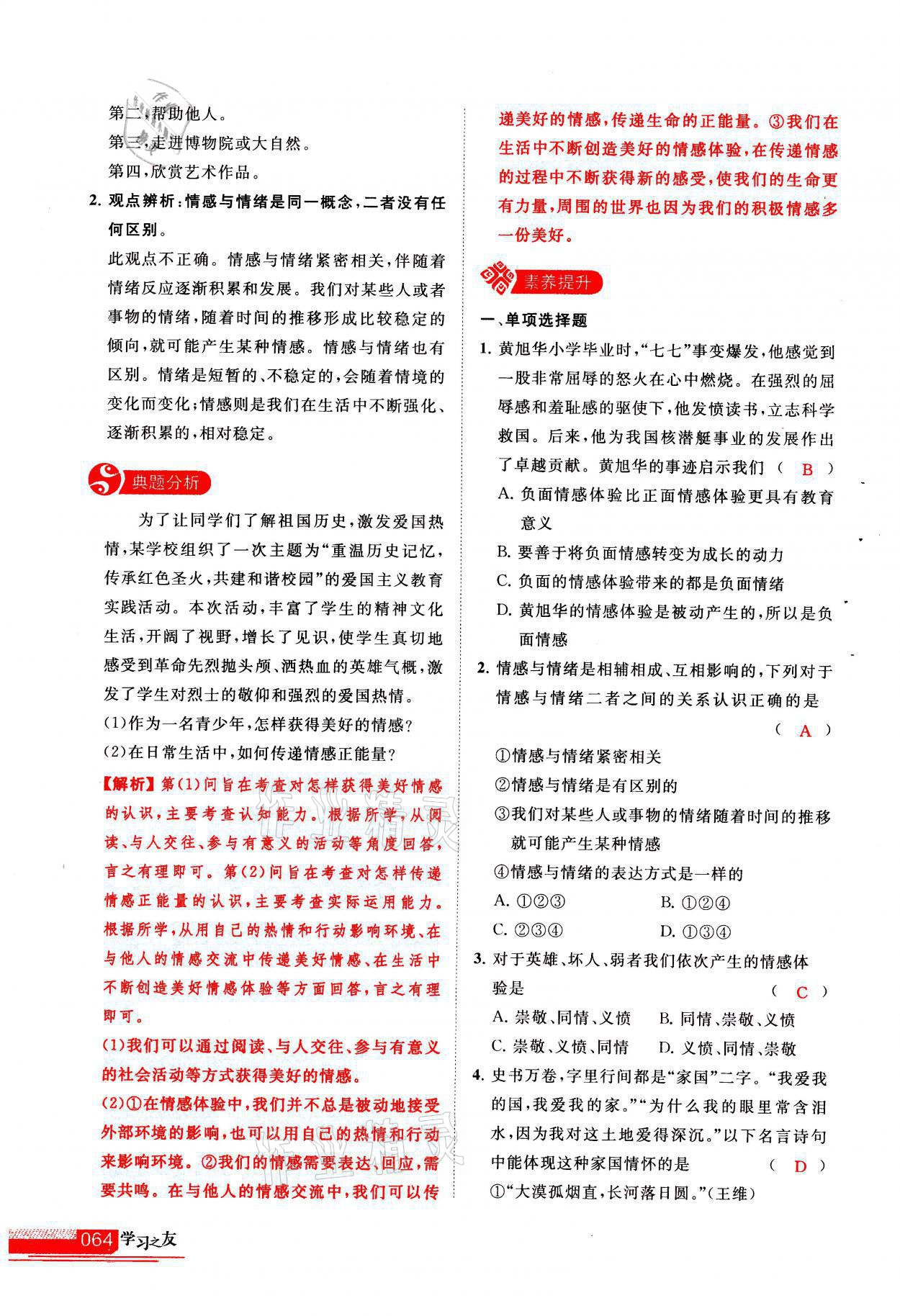 注:目前有些书本章节名称可能整理的还不是很完善,但都是按照顺序排列的,请同学们按照顺序仔细查找。练习册 2021年学习之友七年级道德与法治全一册人教版 答案主要是用来给同学们做完题方便对答案用的,请勿直接抄袭。
