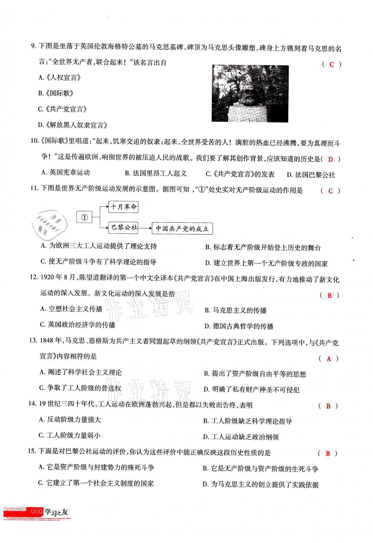 注:目前有些书本章节名称可能整理的还不是很完善,但都是按照顺序排列的,请同学们按照顺序仔细查找。练习册 2021年学习之友九年级历史全一册人教版 答案主要是用来给同学们做完题方便对答案用的,请勿直接抄袭。