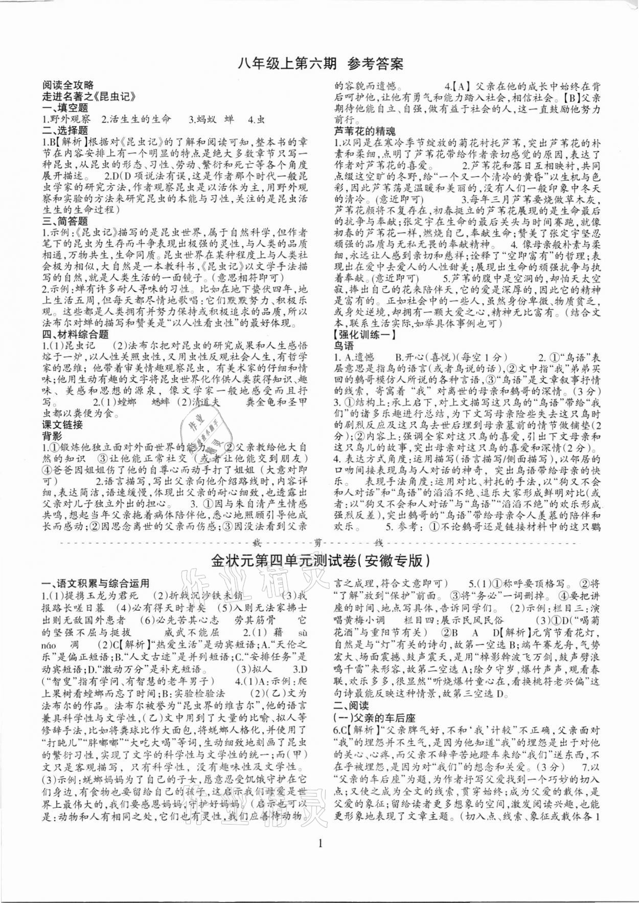 注:目前有些书本章节名称可能整理的还不是很完善,但都是按照顺序排列的,请同学们按照顺序仔细查找。练习册 2021年语文活页八年级上册人教版安徽专版 答案主要是用来给同学们做完题方便对答案用的,请勿直接抄袭。