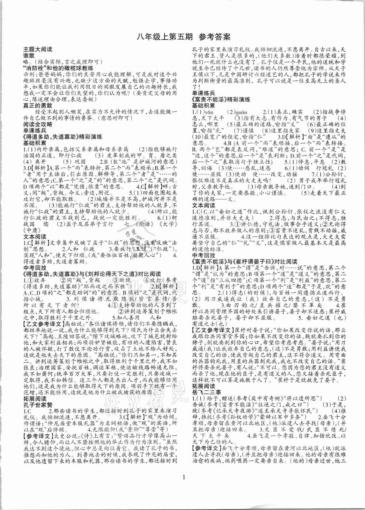 注:目前有些书本章节名称可能整理的还不是很完善,但都是按照顺序排列的,请同学们按照顺序仔细查找。练习册 2021年语文活页八年级上册人教版安徽专版 答案主要是用来给同学们做完题方便对答案用的,请勿直接抄袭。