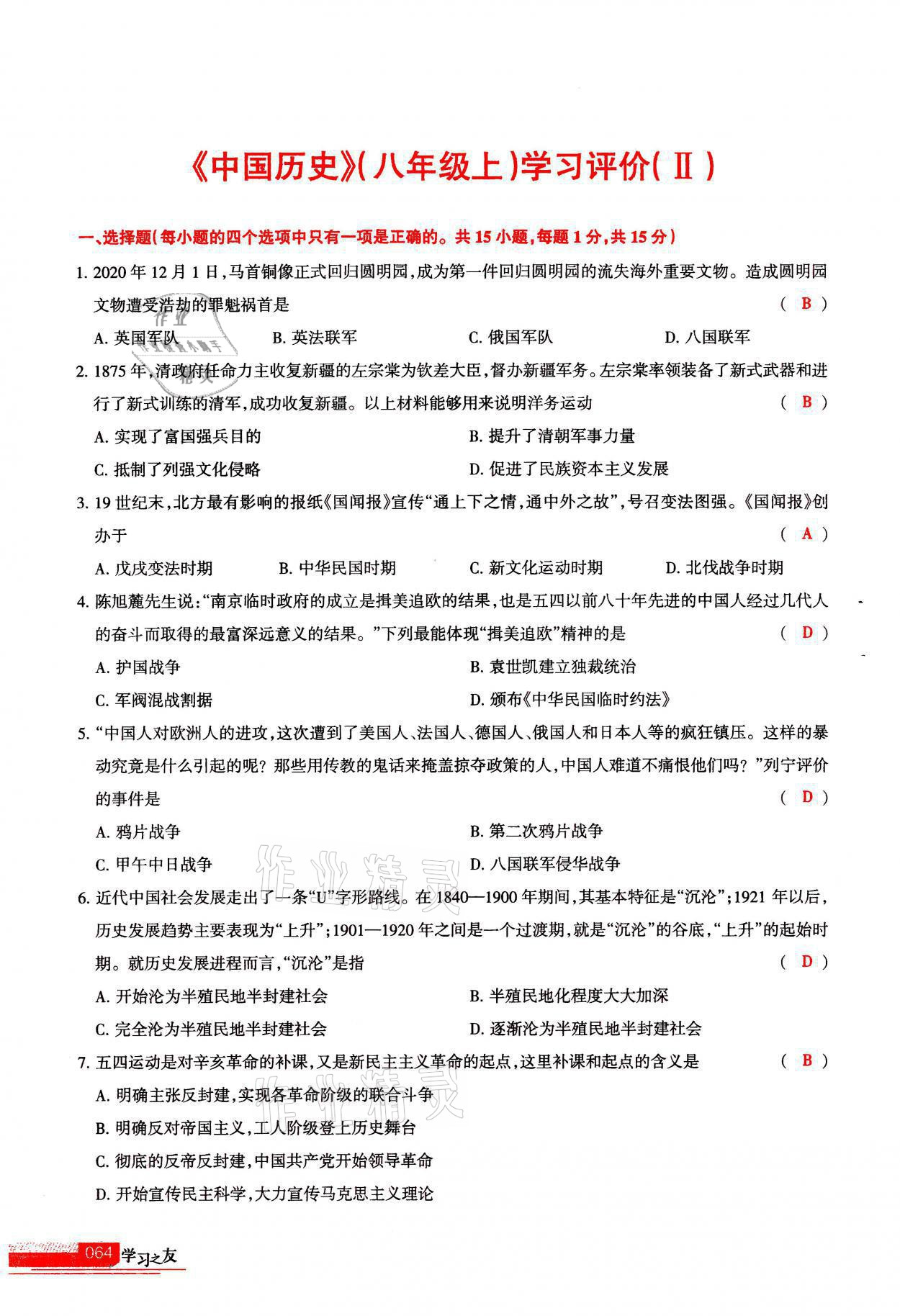 注:目前有些书本章节名称可能整理的还不是很完善,但都是按照顺序排列的,请同学们按照顺序仔细查找。练习册 2021年学习之友八年级历史全一册人教版 答案主要是用来给同学们做完题方便对答案用的,请勿直接抄袭。