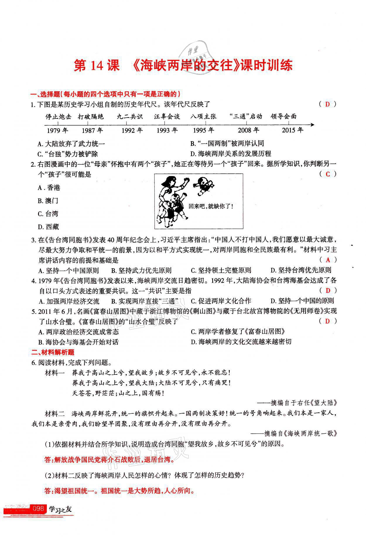 注:目前有些书本章节名称可能整理的还不是很完善,但都是按照顺序排列的,请同学们按照顺序仔细查找。练习册 2021年学习之友八年级历史全一册人教版 答案主要是用来给同学们做完题方便对答案用的,请勿直接抄袭。