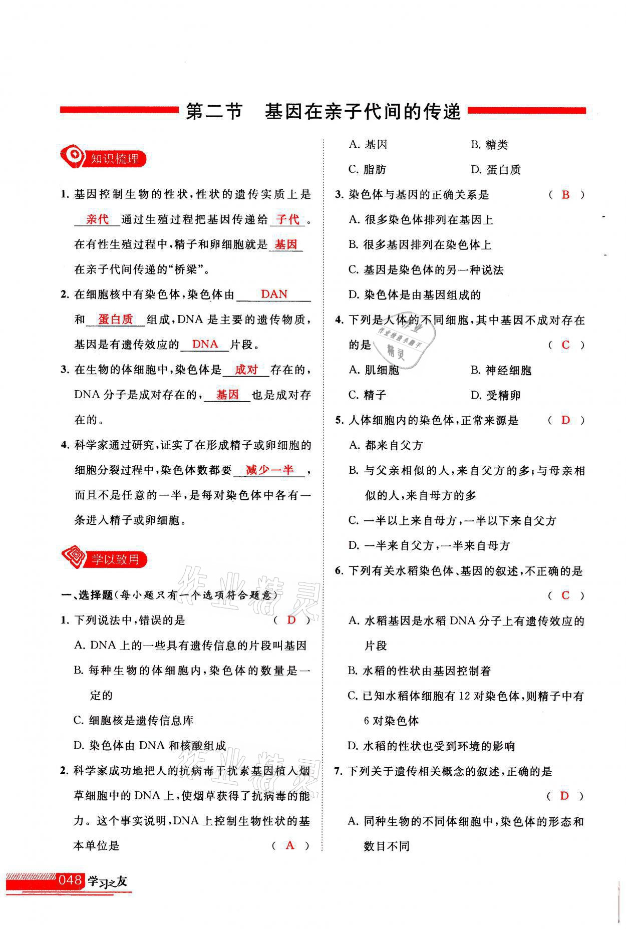 注:目前有些书本章节名称可能整理的还不是很完善,但都是按照顺序排列的,请同学们按照顺序仔细查找。练习册 2021年学习之友八年级生物全一册人教版 答案主要是用来给同学们做完题方便对答案用的,请勿直接抄袭。