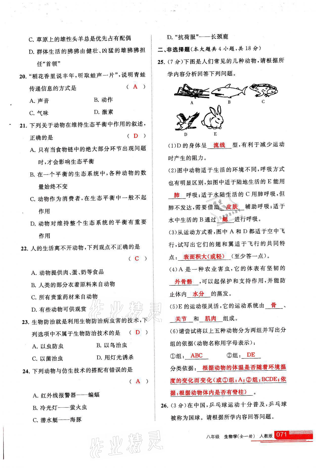 注:目前有些书本章节名称可能整理的还不是很完善,但都是按照顺序排列的,请同学们按照顺序仔细查找。练习册 2021年学习之友八年级生物全一册人教版 答案主要是用来给同学们做完题方便对答案用的,请勿直接抄袭。