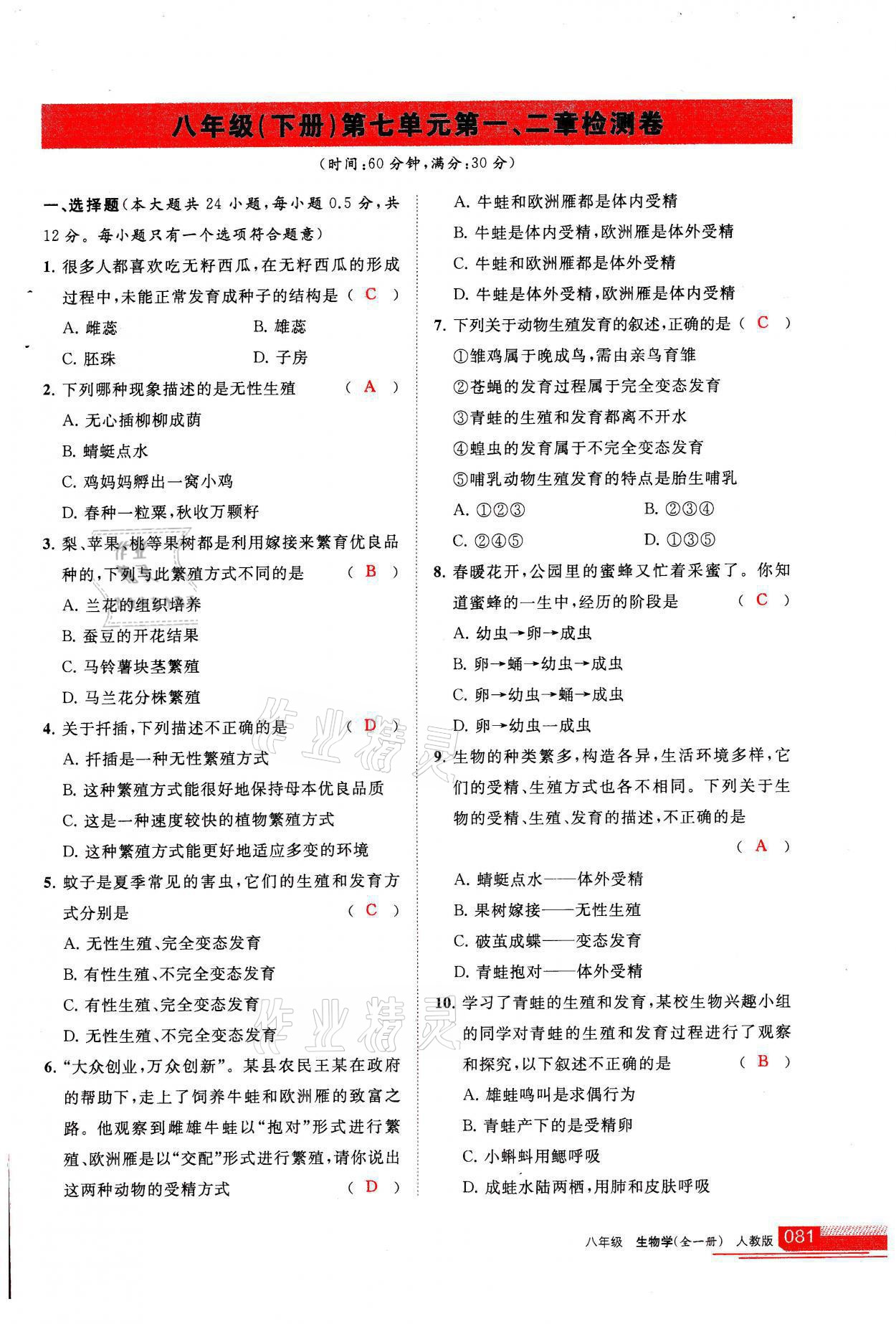 注:目前有些书本章节名称可能整理的还不是很完善,但都是按照顺序排列的,请同学们按照顺序仔细查找。练习册 2021年学习之友八年级生物全一册人教版 答案主要是用来给同学们做完题方便对答案用的,请勿直接抄袭。