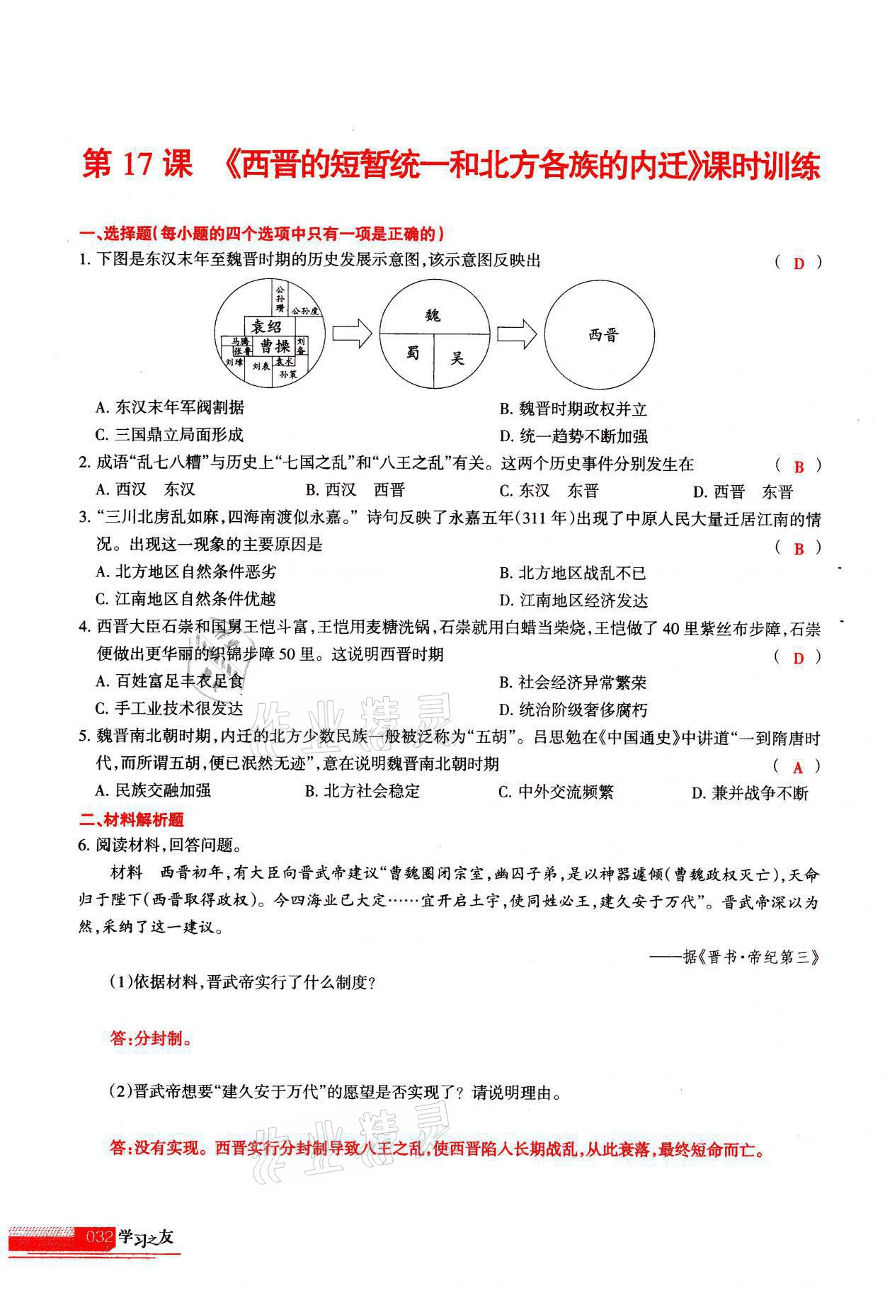 注:目前有些书本章节名称可能整理的还不是很完善,但都是按照顺序排列的,请同学们按照顺序仔细查找。练习册 2021年学习之友七年级历史全一册人教版 答案主要是用来给同学们做完题方便对答案用的,请勿直接抄袭。