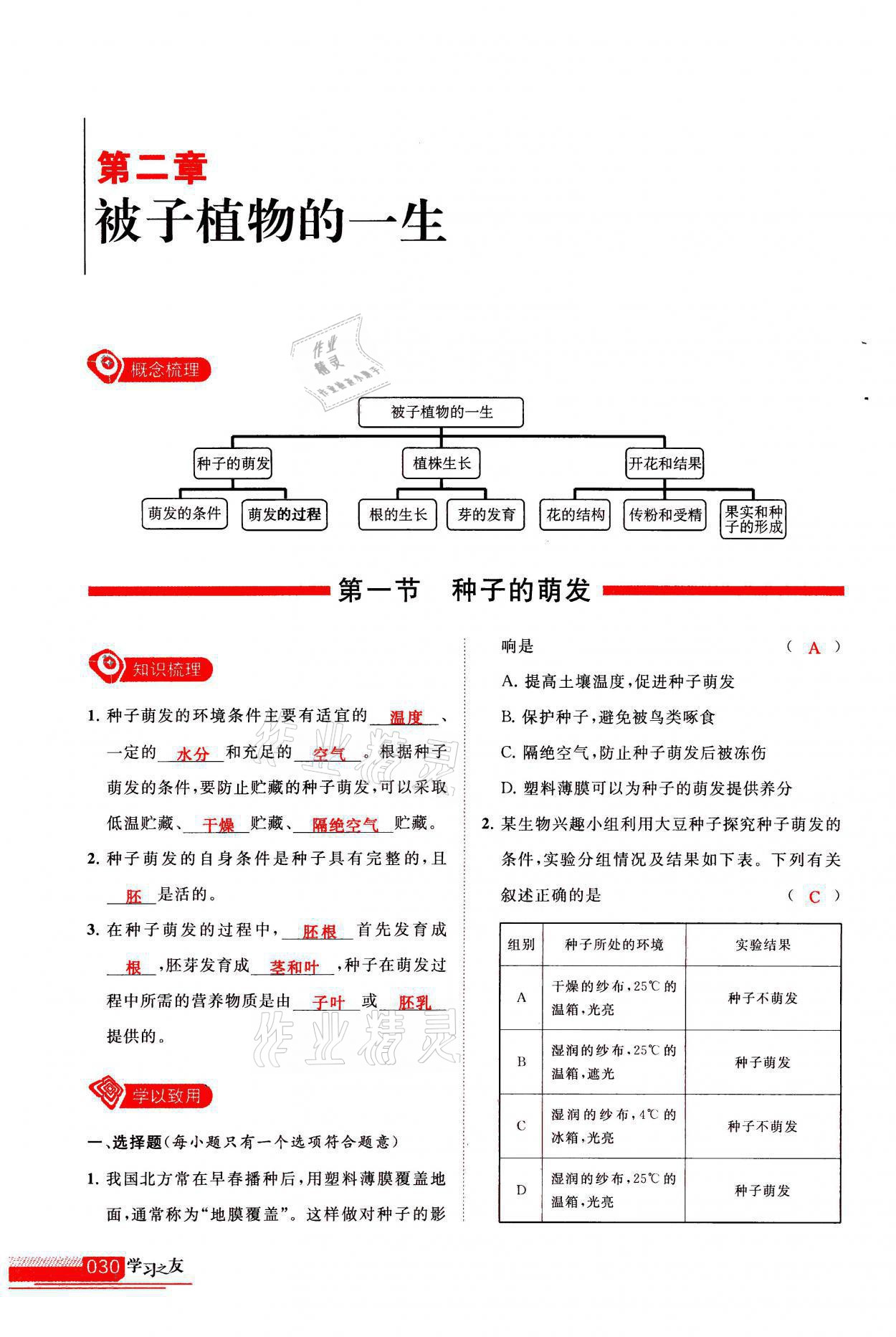 注:目前有些书本章节名称可能整理的还不是很完善,但都是按照顺序排列的,请同学们按照顺序仔细查找。练习册 2021年学习之友七年级生物全一册人教版 答案主要是用来给同学们做完题方便对答案用的,请勿直接抄袭。