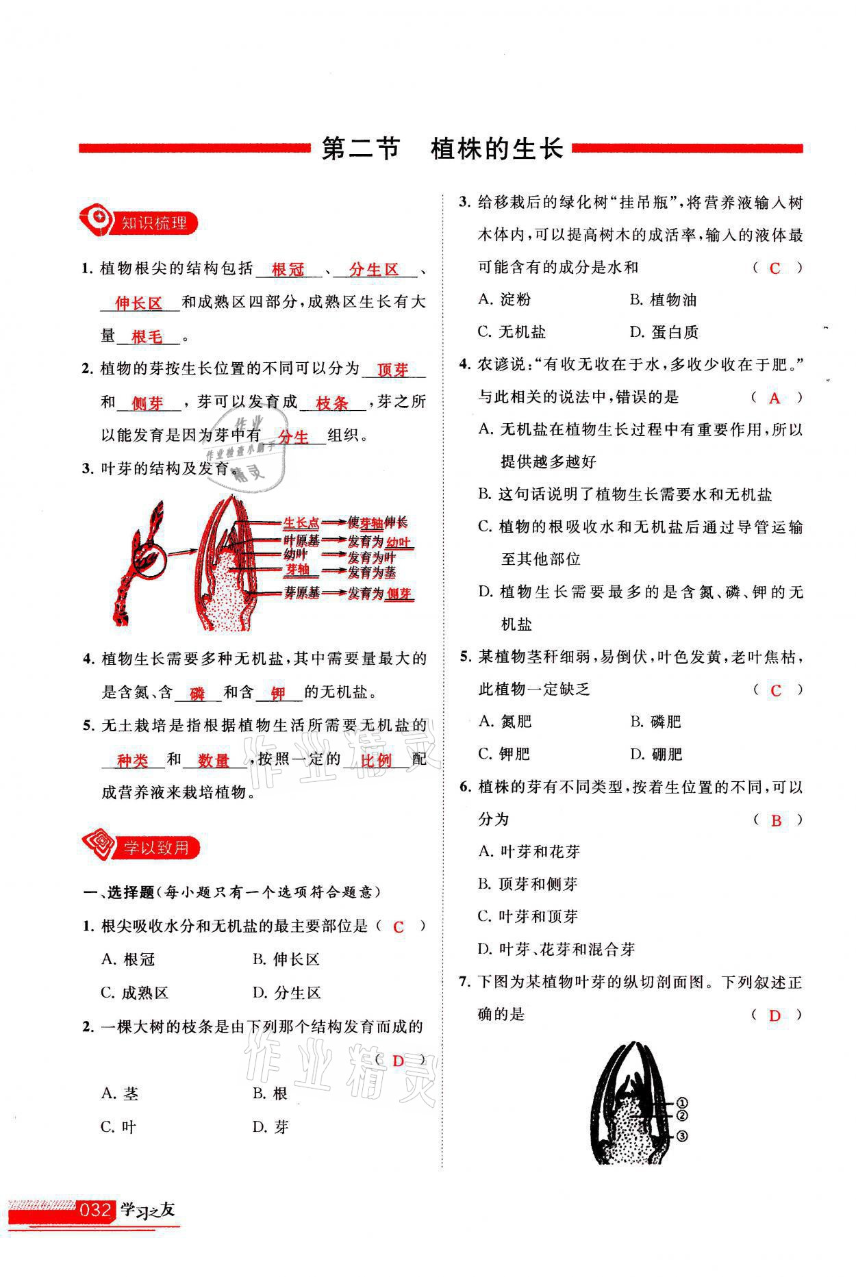 注:目前有些书本章节名称可能整理的还不是很完善,但都是按照顺序排列的,请同学们按照顺序仔细查找。练习册 2021年学习之友七年级生物全一册人教版 答案主要是用来给同学们做完题方便对答案用的,请勿直接抄袭。
