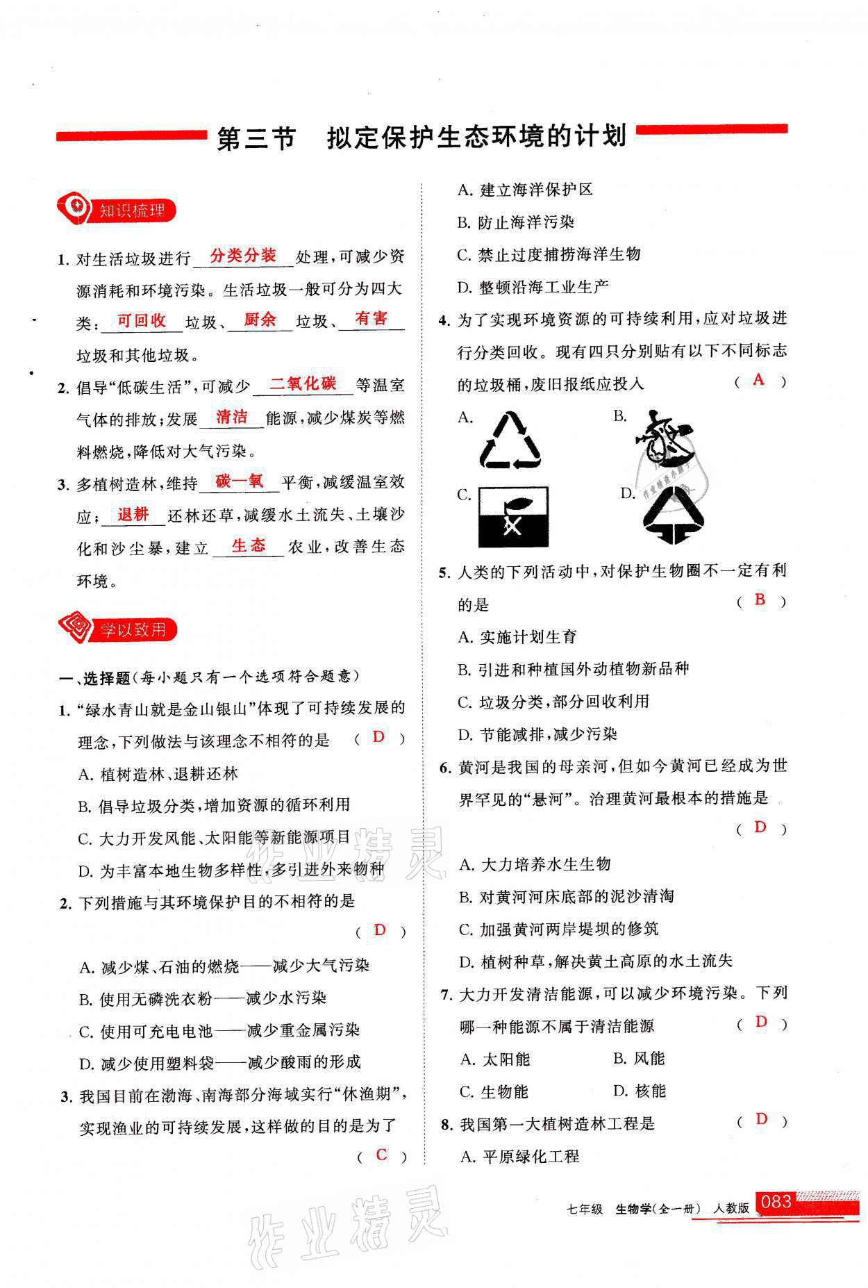 注:目前有些书本章节名称可能整理的还不是很完善,但都是按照顺序排列的,请同学们按照顺序仔细查找。练习册 2021年学习之友七年级生物全一册人教版 答案主要是用来给同学们做完题方便对答案用的,请勿直接抄袭。