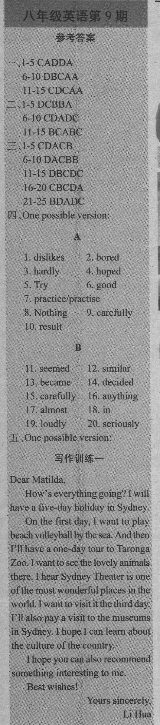 注:目前有些书本章节名称可能整理的还不是很完善,但都是按照顺序排列的,请同学们按照顺序仔细查找。练习册 2021年学习辅导报八年级英语人教版 答案主要是用来给同学们做完题方便对答案用的,请勿直接抄袭。