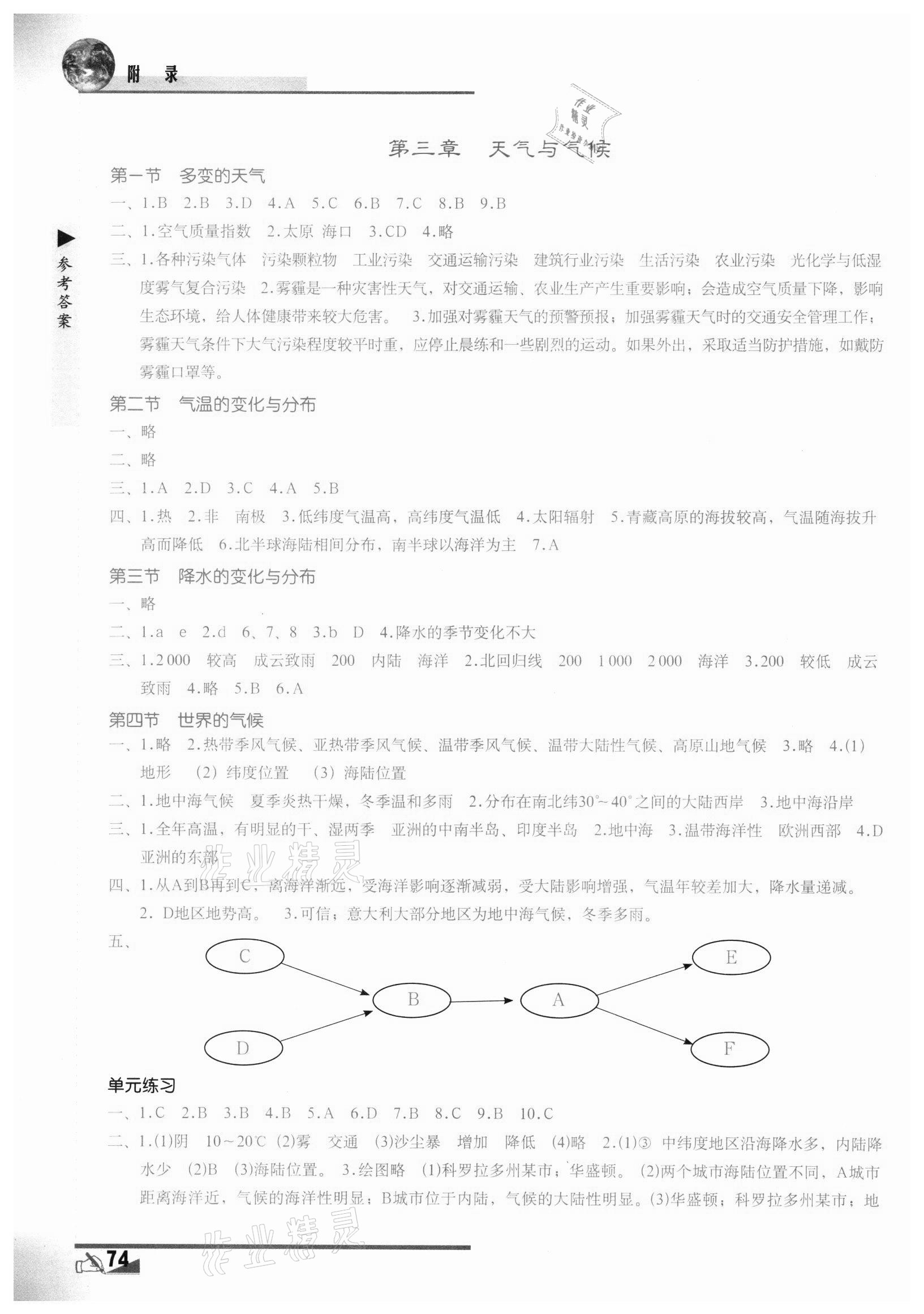 注:目前有些书本章节名称可能整理的还不是很完善,但都是按照顺序排列的,请同学们按照顺序仔细查找。练习册 2021年地理填充图册七年级上册人教版地质出版社 答案主要是用来给同学们做完题方便对答案用的,请勿直接抄袭。
