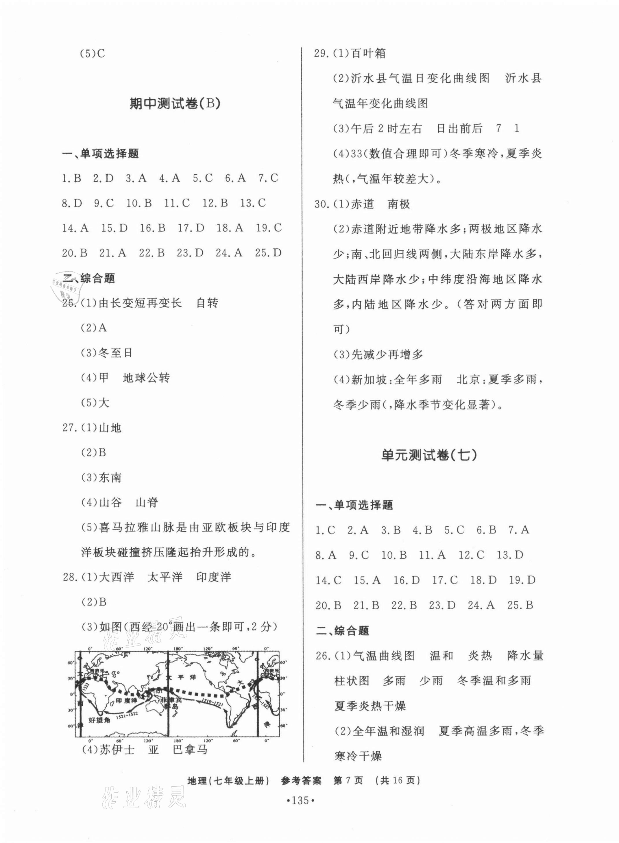 注:目前有些书本章节名称可能整理的还不是很完善,但都是按照顺序排列的,请同学们按照顺序仔细查找。练习册 2021年初中知识与能力测试卷七年级地理上册 答案主要是用来给同学们做完题方便对答案用的,请勿直接抄袭。