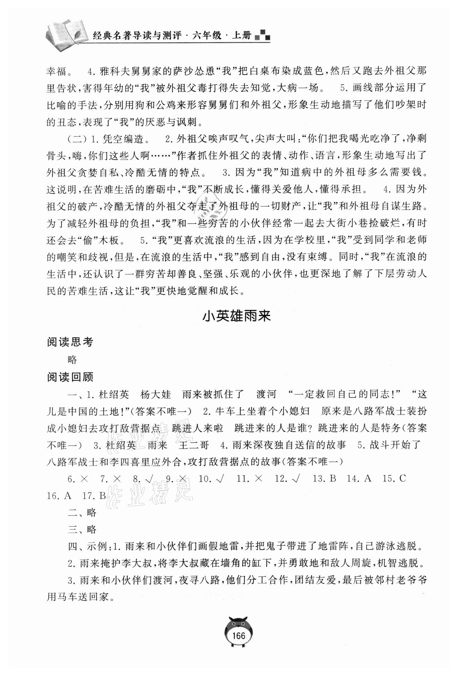 注:目前有些书本章节名称可能整理的还不是很完善,但都是按照顺序排列的,请同学们按照顺序仔细查找。练习册 2021年经典名著导读与测评六年级上册人教版 答案主要是用来给同学们做完题方便对答案用的,请勿直接抄袭。