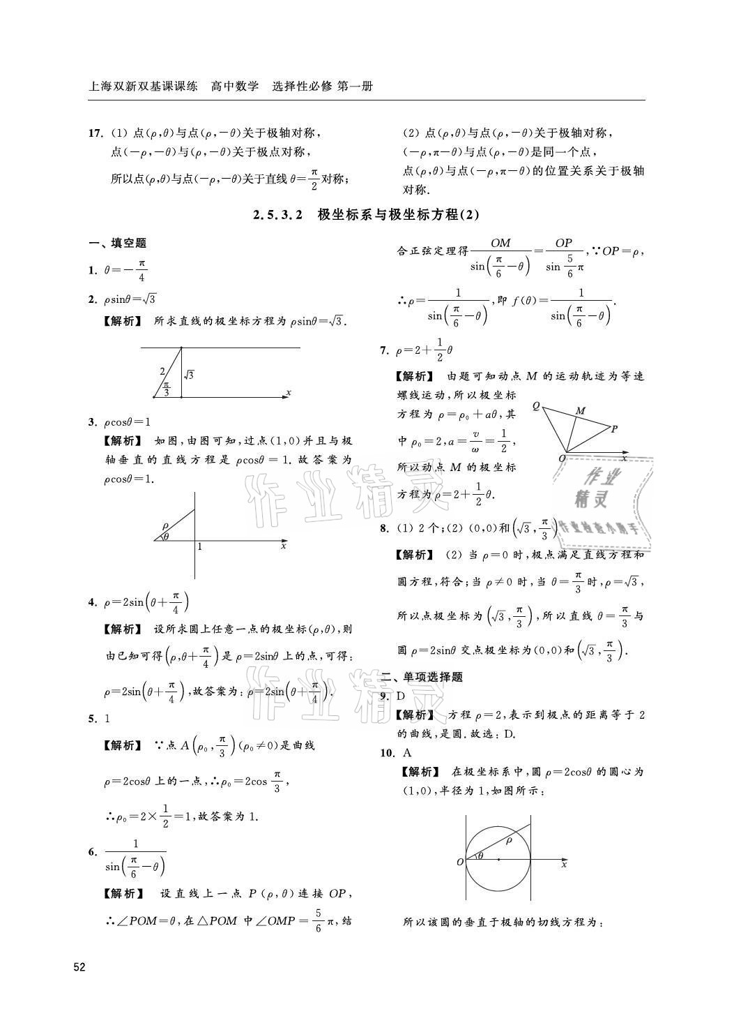 注:目前有些书本章节名称可能整理的还不是很完善,但都是按照顺序排列的,请同学们按照顺序仔细查找。练习册 2021年上海双新双基课课练高中数学选择性必修一沪教版 答案主要是用来给同学们做完题方便对答案用的,请勿直接抄袭。