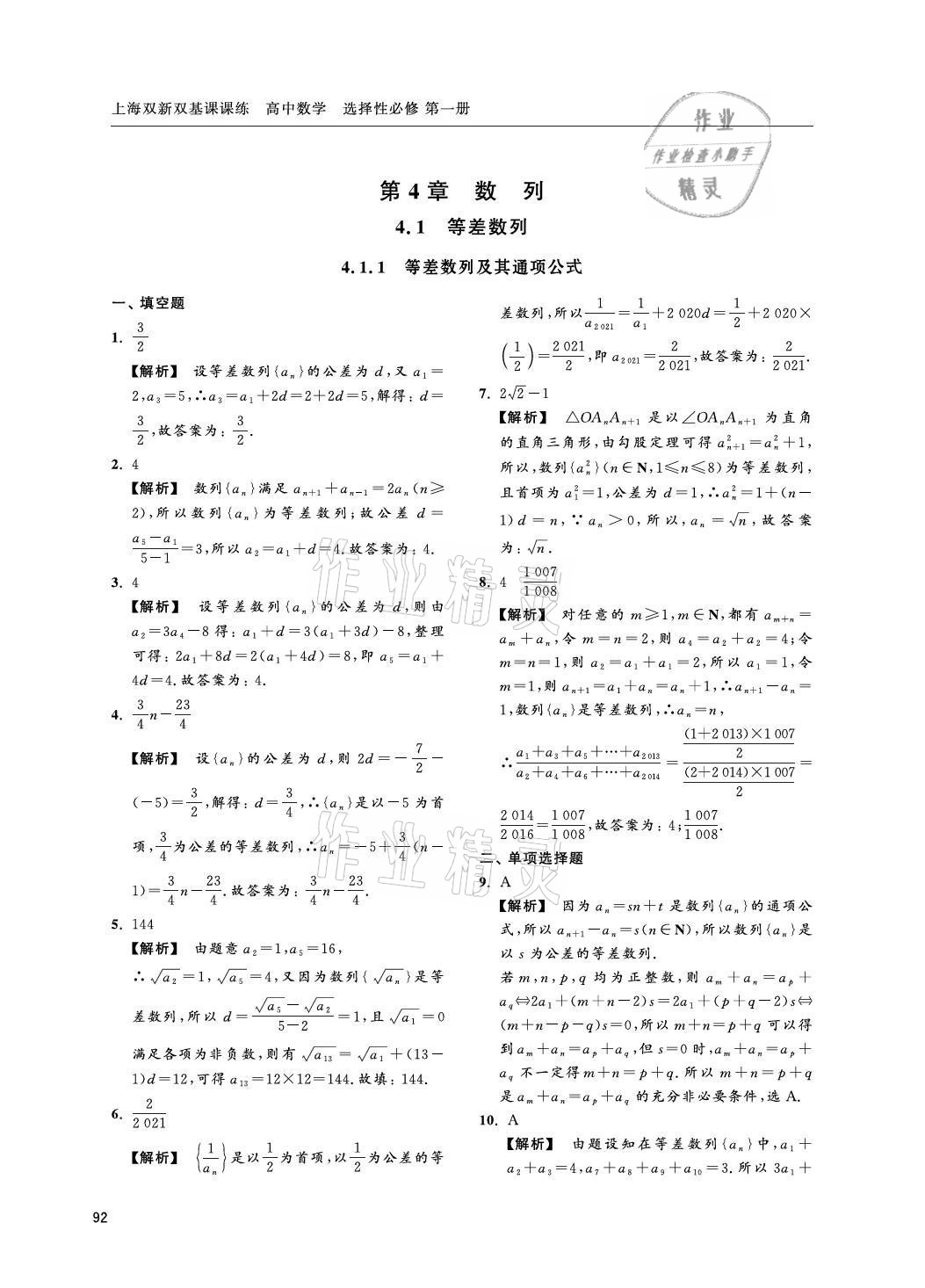 注:目前有些书本章节名称可能整理的还不是很完善,但都是按照顺序排列的,请同学们按照顺序仔细查找。练习册 2021年上海双新双基课课练高中数学选择性必修一沪教版 答案主要是用来给同学们做完题方便对答案用的,请勿直接抄袭。
