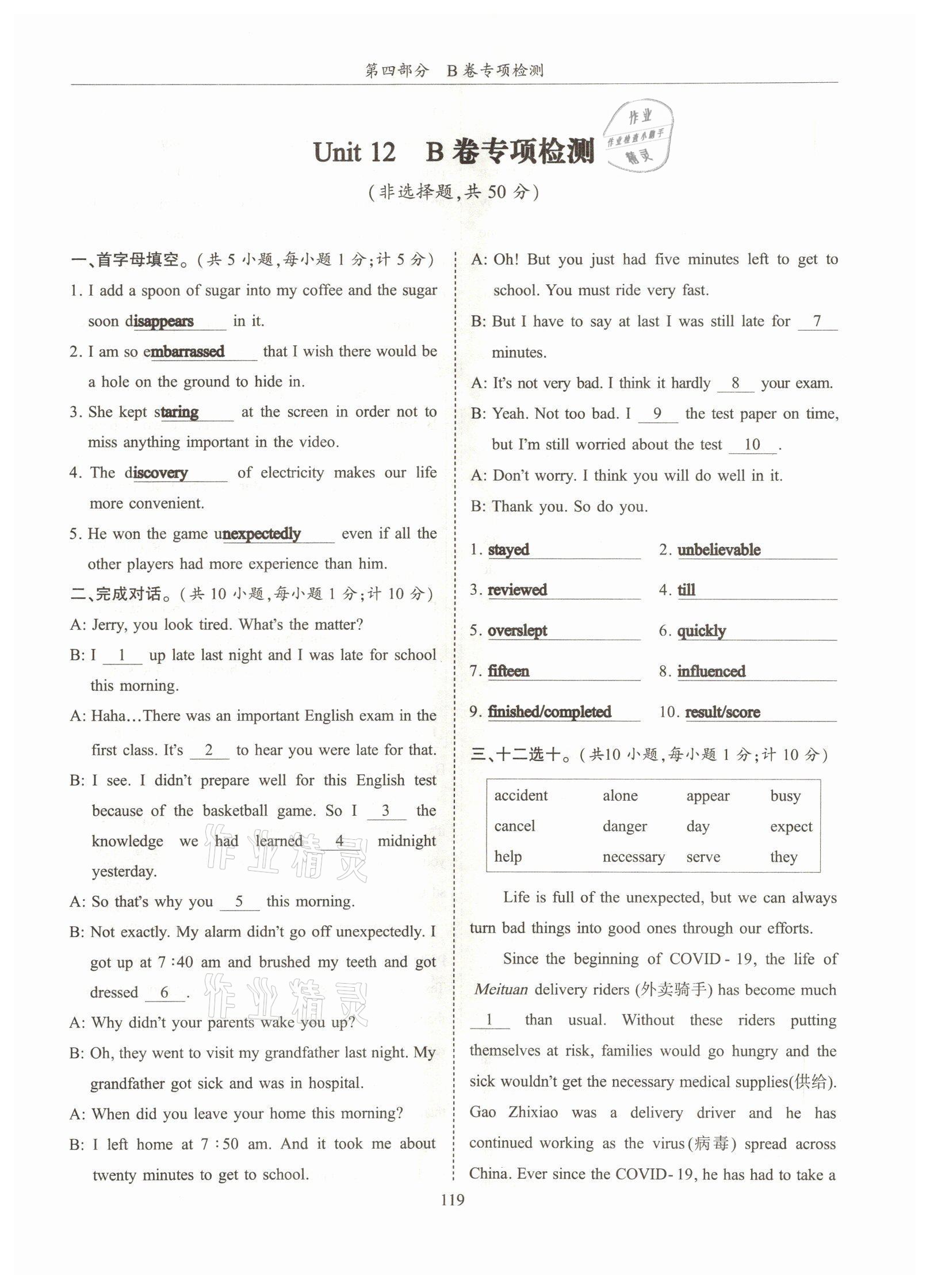注:目前有些书本章节名称可能整理的还不是很完善,但都是按照顺序排列的,请同学们按照顺序仔细查找。练习册 2022年指南针高分必备九年级英语U11-U14人教版 答案主要是用来给同学们做完题方便对答案用的,请勿直接抄袭。