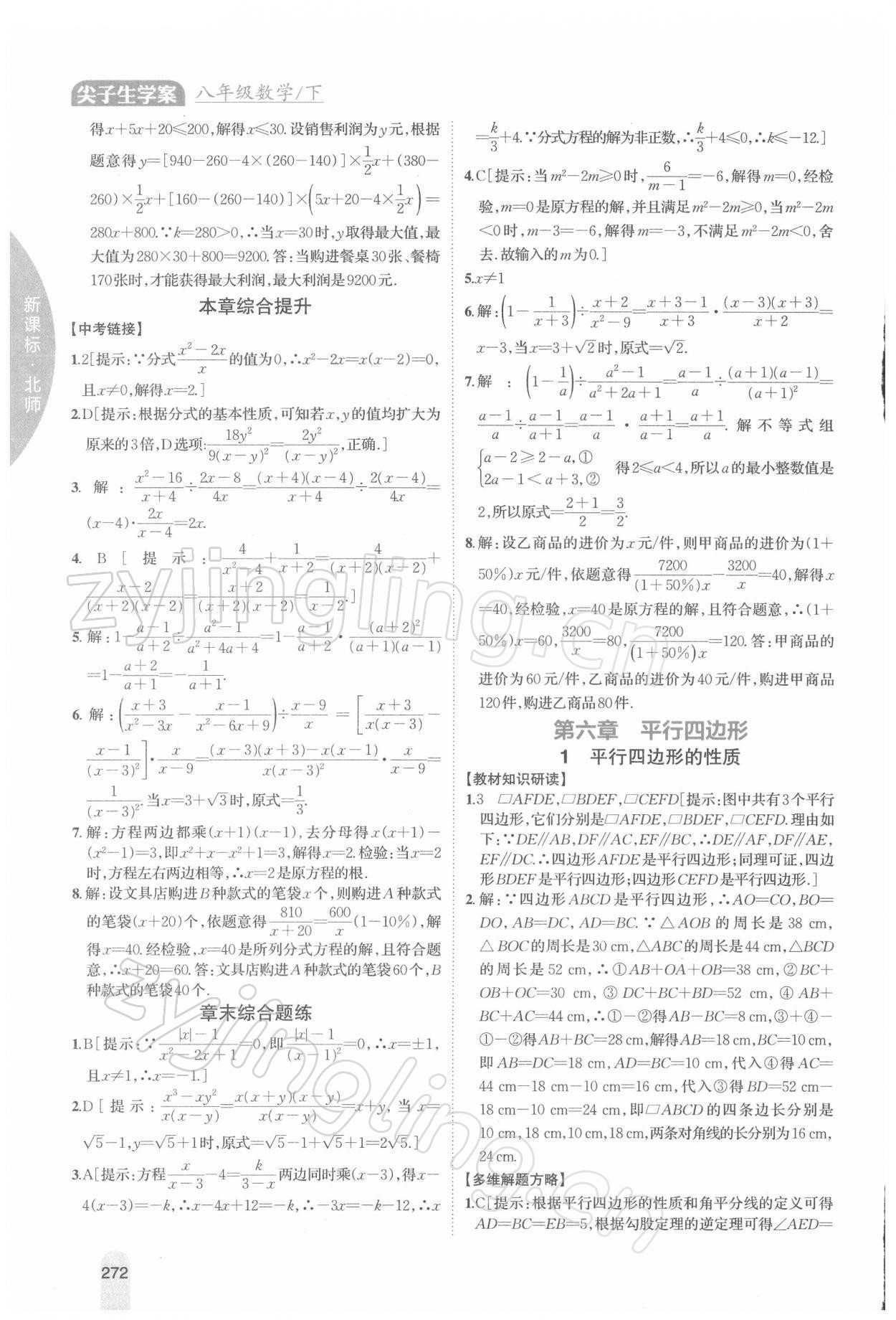 注:目前有些书本章节名称可能整理的还不是很完善,但都是按照顺序排列的,请同学们按照顺序仔细查找。练习册 2022年尖子生学案八年级数学下册北师大版 答案主要是用来给同学们做完题方便对答案用的,请勿直接抄袭。