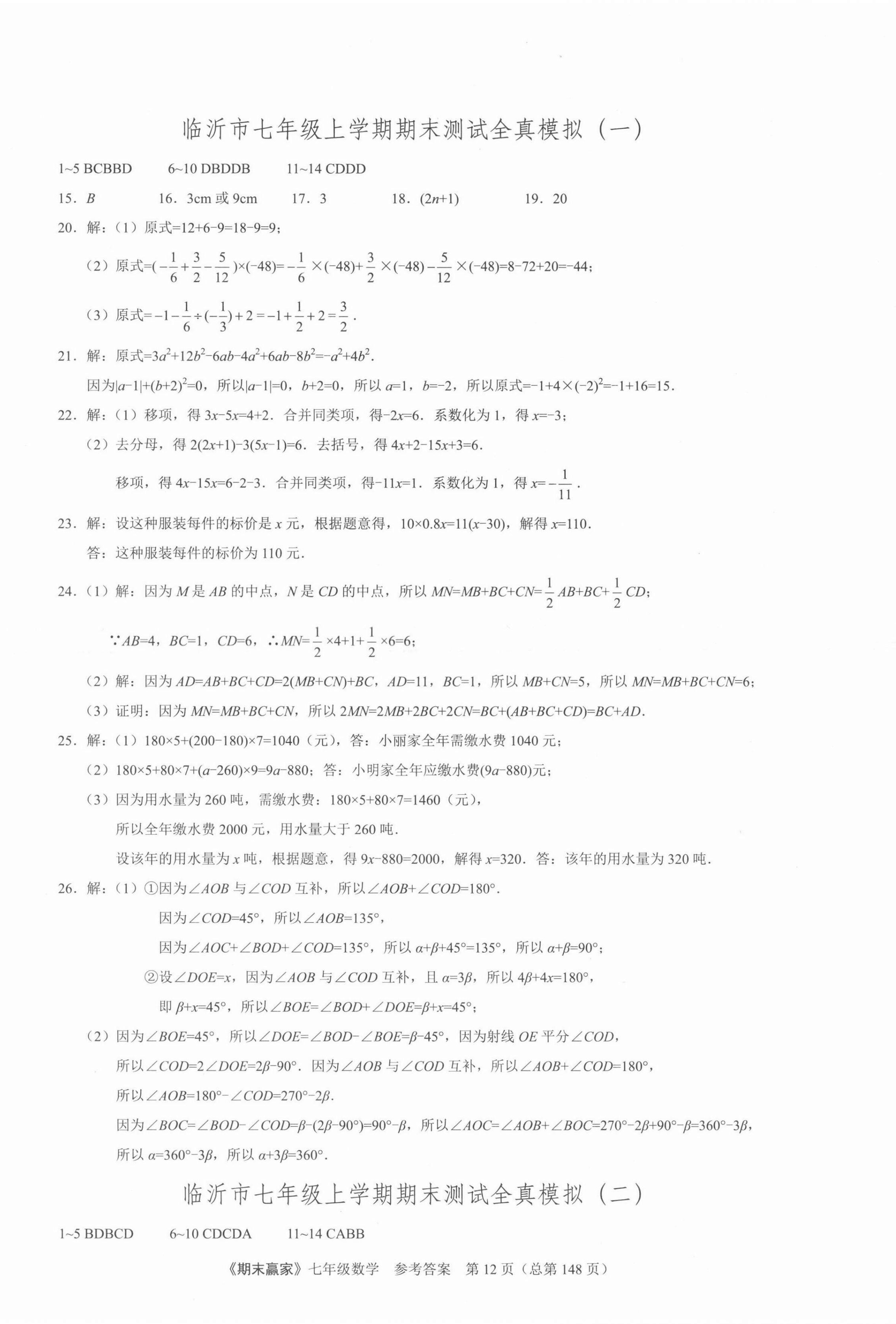 注:目前有些书本章节名称可能整理的还不是很完善,但都是按照顺序排列的,请同学们按照顺序仔细查找。练习册 2021年期末赢家七年级数学上册人教版 答案主要是用来给同学们做完题方便对答案用的,请勿直接抄袭。
