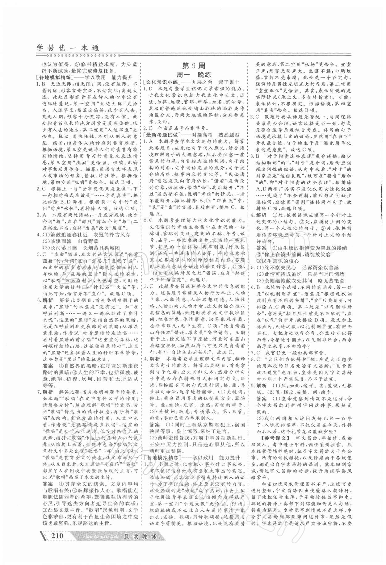 注:目前有些书本章节名称可能整理的还不是很完善,但都是按照顺序排列的,请同学们按照顺序仔细查找。练习册 2021年晨读晚练高中语文 答案主要是用来给同学们做完题方便对答案用的,请勿直接抄袭。