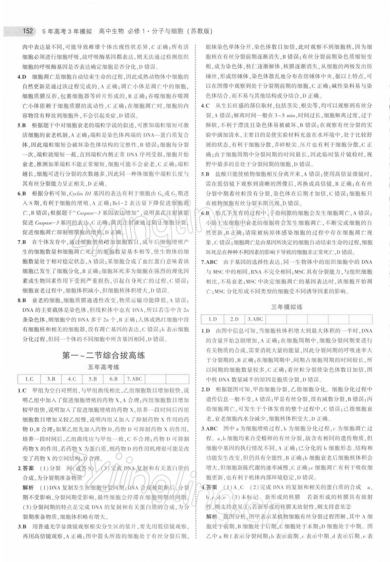 2021年5年高考3年模拟高中生物必修1苏教版分子与细胞