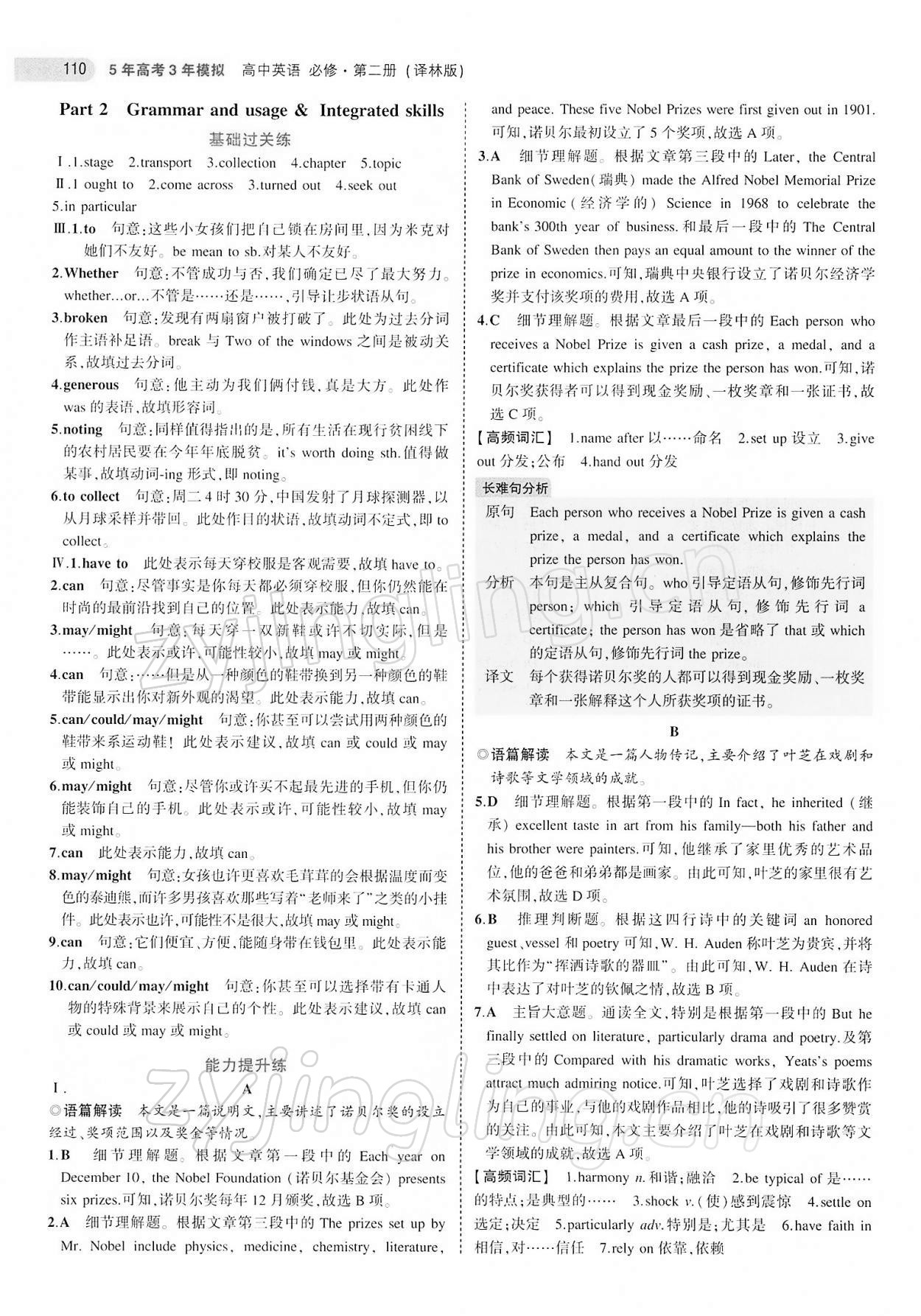2021年5年高考3年模拟高中英语必修第二册译林版