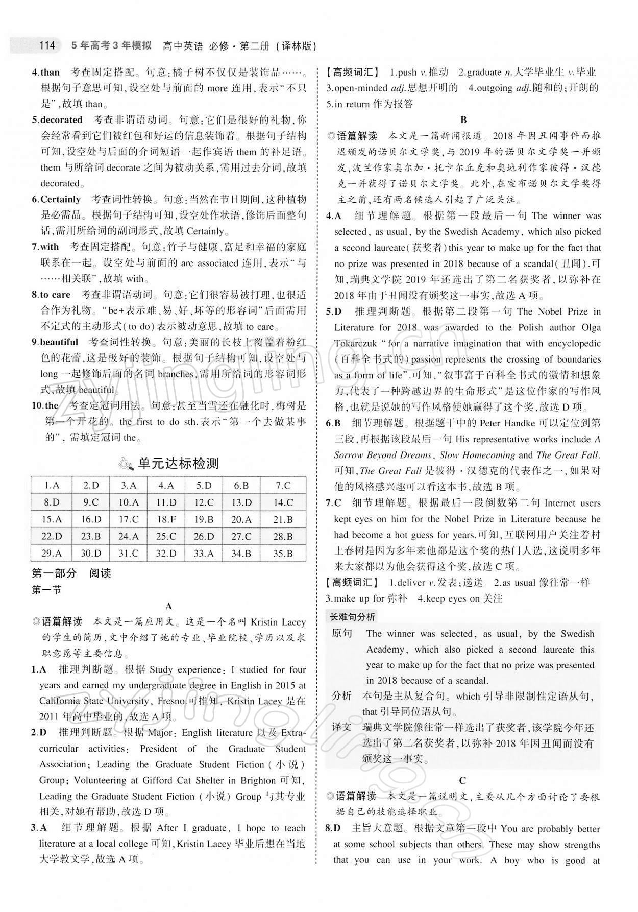注:目前有些书本章节名称可能整理的还不是很完善,但都是按照顺序排列的,请同学们按照顺序仔细查找。练习册 2021年5年高考3年模拟高中英语必修第二册译林版 答案主要是用来给同学们做完题方便对答案用的,请勿直接抄袭。