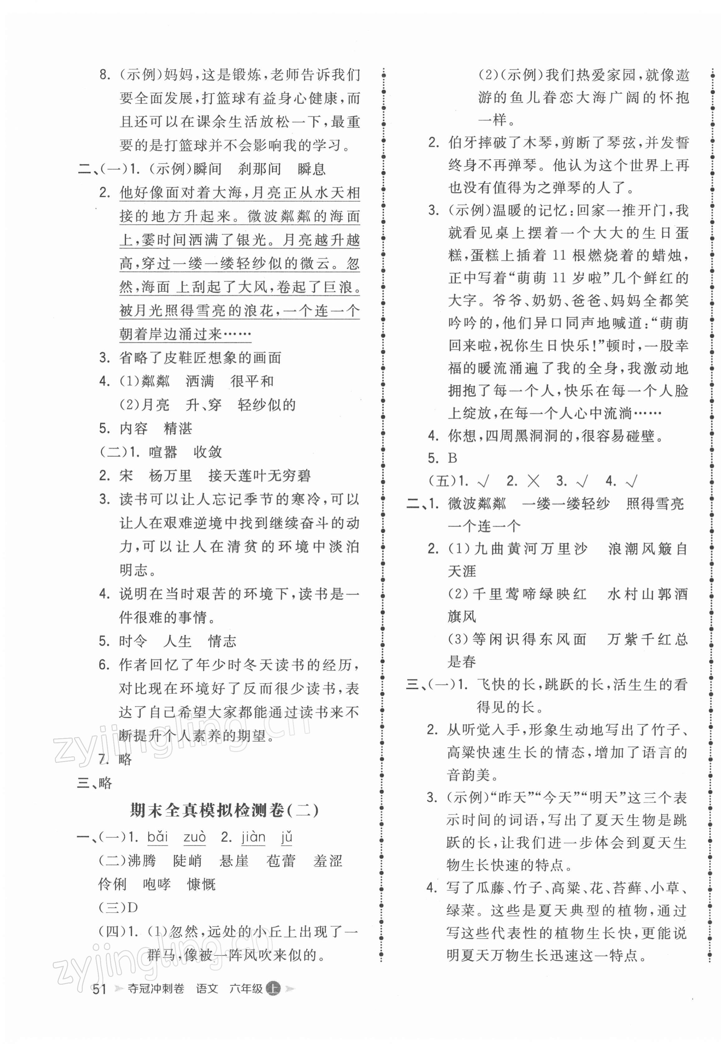 注:目前有些书本章节名称可能整理的还不是很完善,但都是按照顺序排列的,请同学们按照顺序仔细查找。练习册 2021年夺冠冲刺卷六年级语文上册人教版 答案主要是用来给同学们做完题方便对答案用的,请勿直接抄袭。
