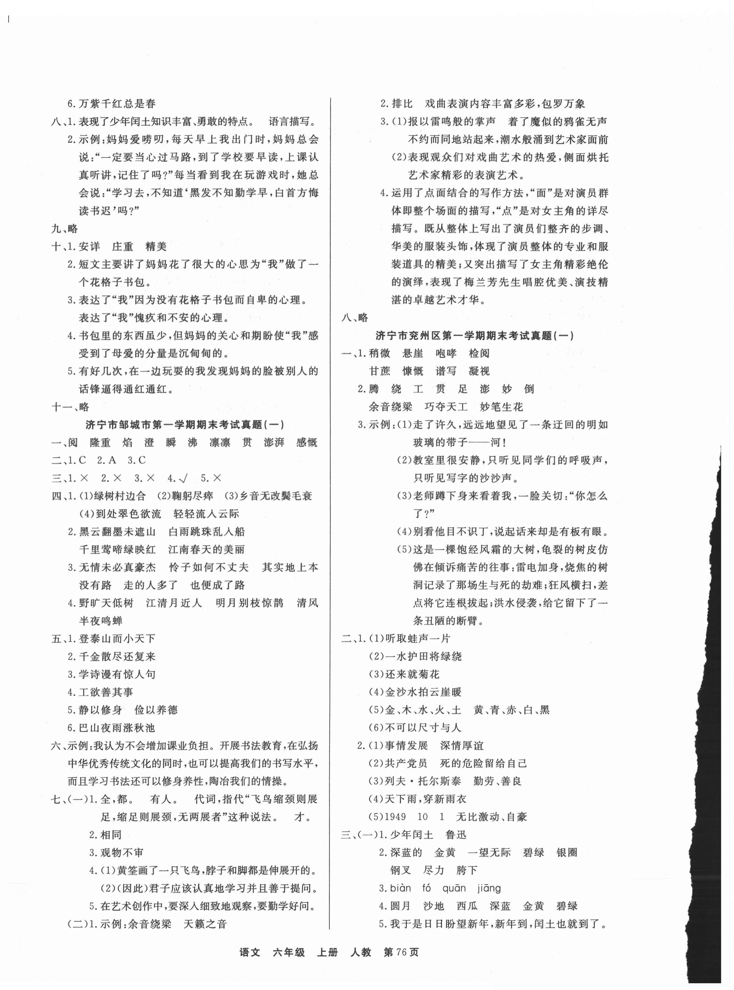 2021年金牌期末好卷六年级语文上册人教版济宁专版