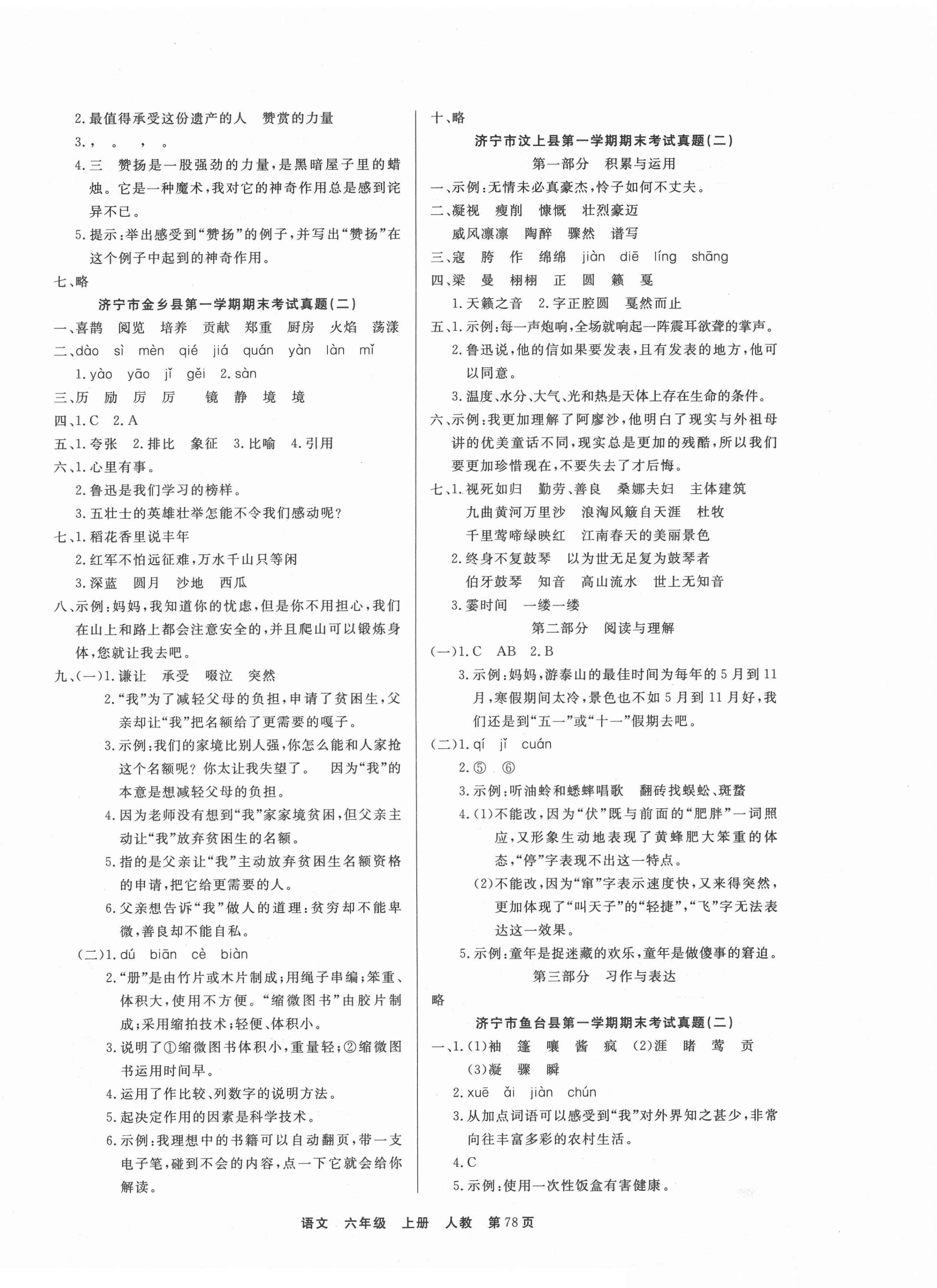 2021年金牌期末好卷六年级语文上册人教版济宁专版