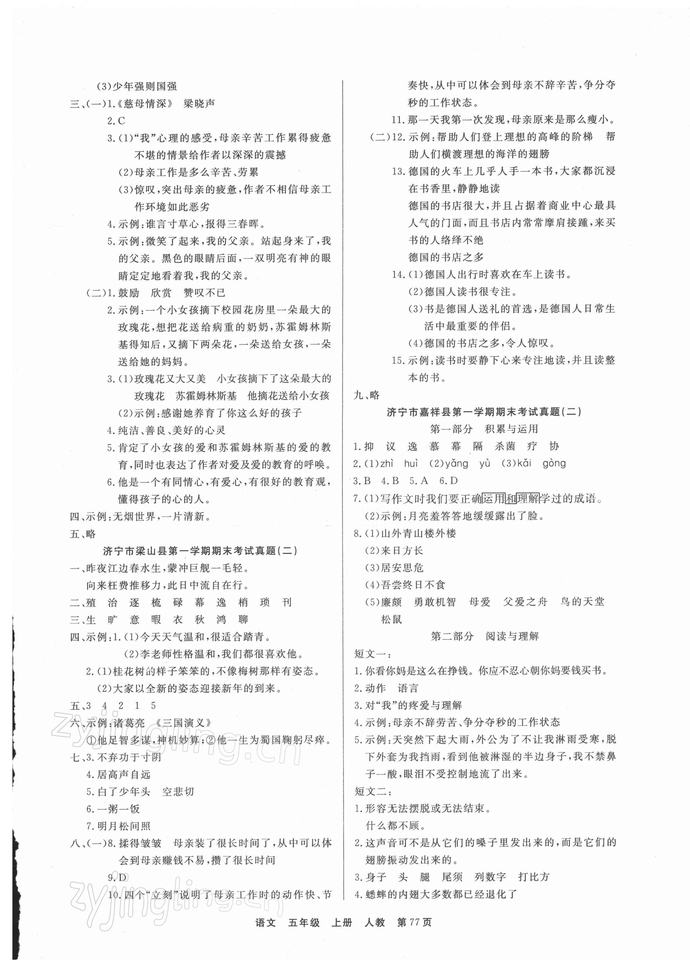 《2021年金牌期末好卷五年级语文上册人教版济宁专版》