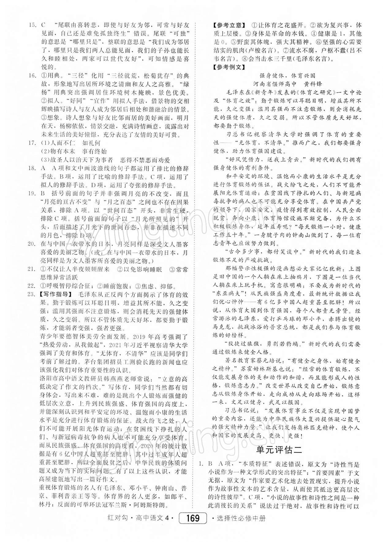 注:目前有些书本章节名称可能整理的还不是很完善,但都是按照顺序排列的,请同学们按照顺序仔细查找。练习册 2021年红对勾45分钟作业与单元评估高中语文选修中册人教版 答案主要是用来给同学们做完题方便对答案用的,请勿直接抄袭。