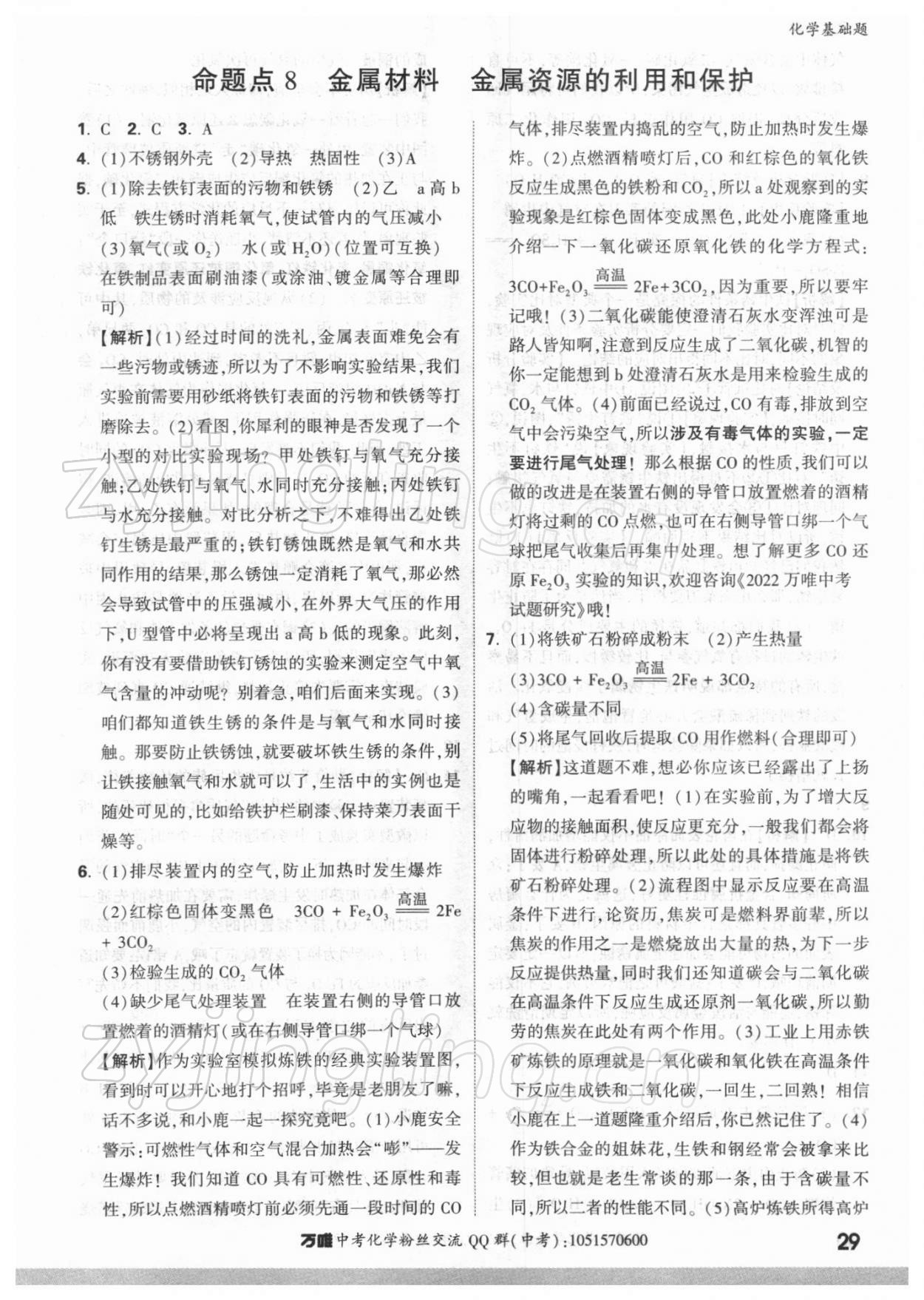 注:目前有些书本章节名称可能整理的还不是很完善,但都是按照顺序排列的,请同学们按照顺序仔细查找。练习册 2022年万唯中考化学基础题 答案主要是用来给同学们做完题方便对答案用的,请勿直接抄袭。