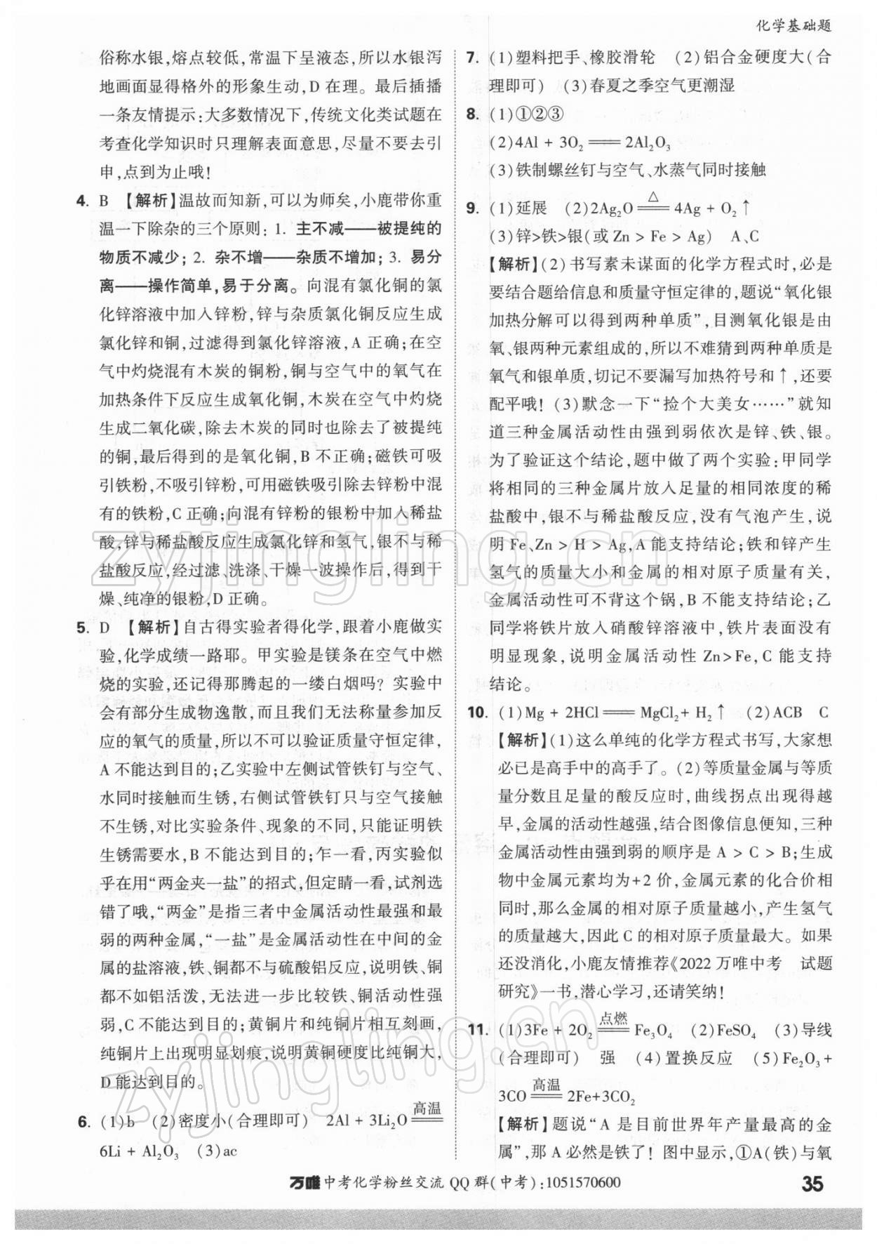 注:目前有些书本章节名称可能整理的还不是很完善,但都是按照顺序排列的,请同学们按照顺序仔细查找。练习册 2022年万唯中考化学基础题 答案主要是用来给同学们做完题方便对答案用的,请勿直接抄袭。