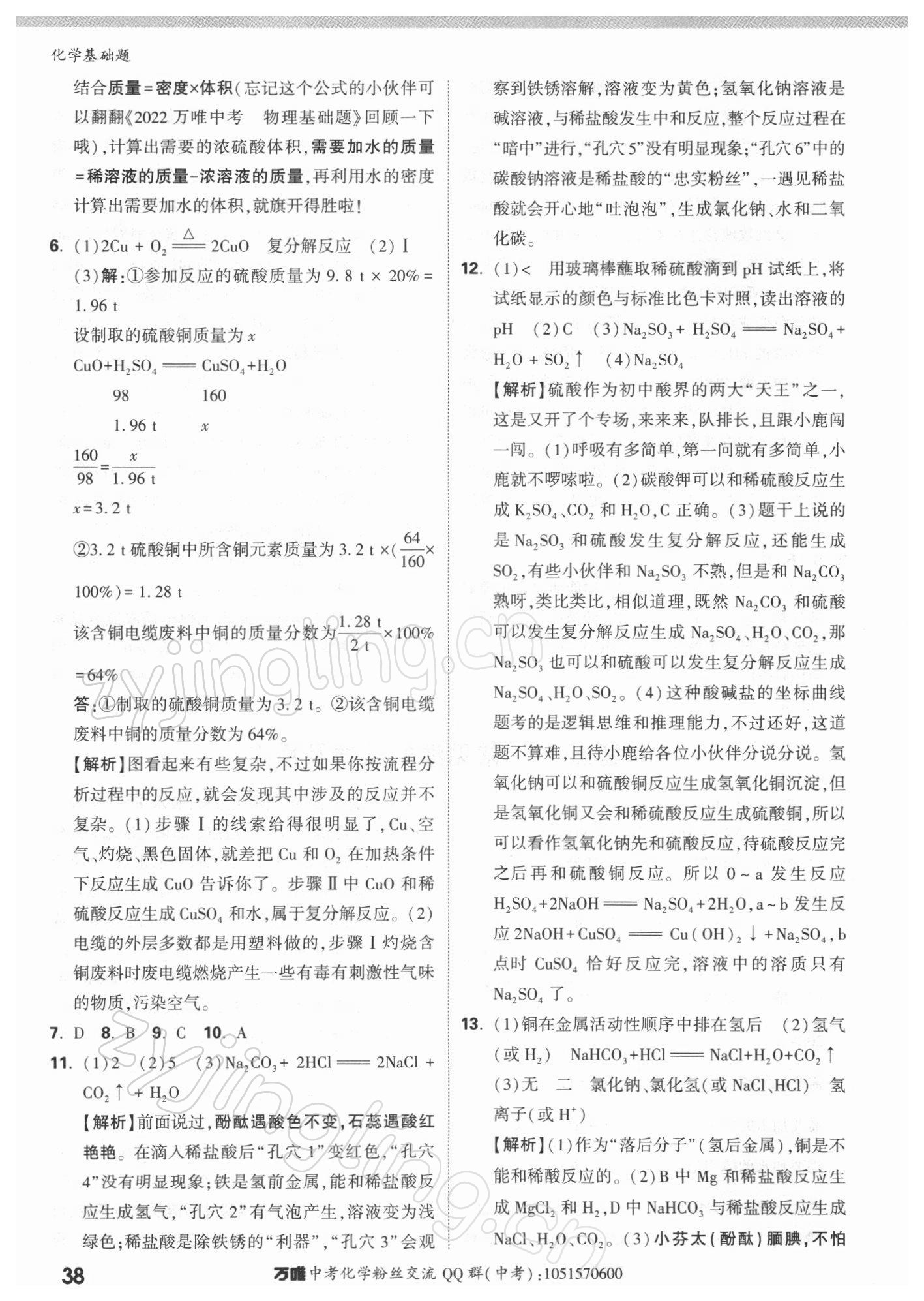 注:目前有些书本章节名称可能整理的还不是很完善,但都是按照顺序排列的,请同学们按照顺序仔细查找。练习册 2022年万唯中考化学基础题 答案主要是用来给同学们做完题方便对答案用的,请勿直接抄袭。