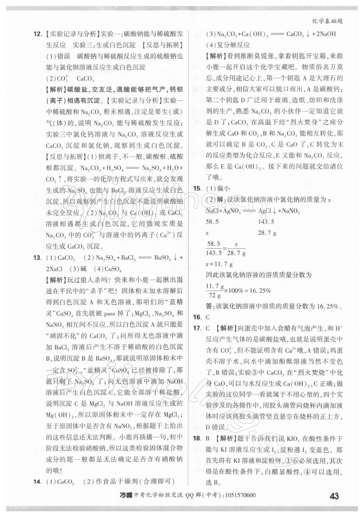 注:目前有些书本章节名称可能整理的还不是很完善,但都是按照顺序排列的,请同学们按照顺序仔细查找。练习册 2022年万唯中考化学基础题 答案主要是用来给同学们做完题方便对答案用的,请勿直接抄袭。
