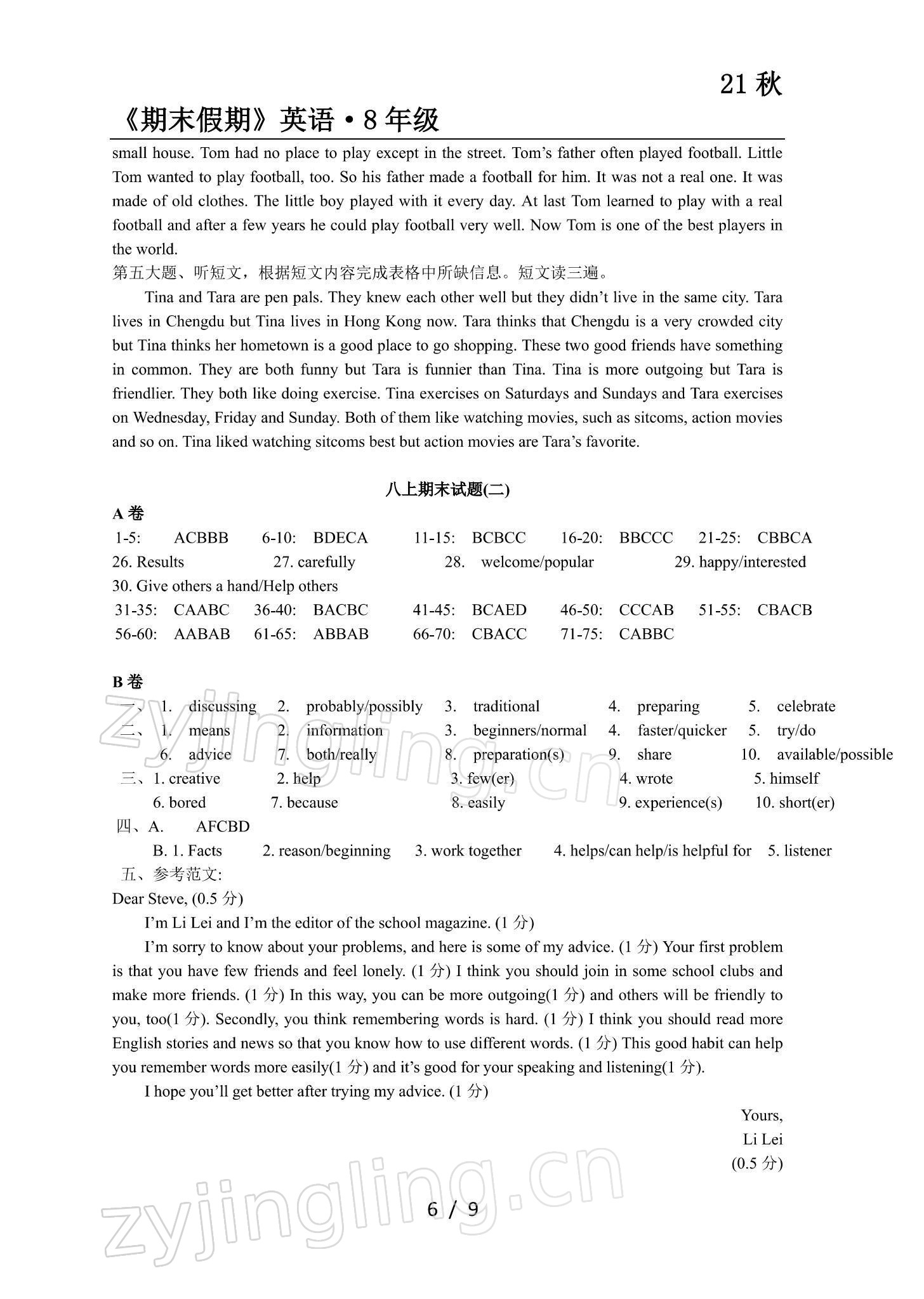 注:目前有些书本章节名称可能整理的还不是很完善,但都是按照顺序排列的,请同学们按照顺序仔细查找。练习册 2022年指南针高分必备期末复习寒假作业八年级英语人教版 答案主要是用来给同学们做完题方便对答案用的,请勿直接抄袭。