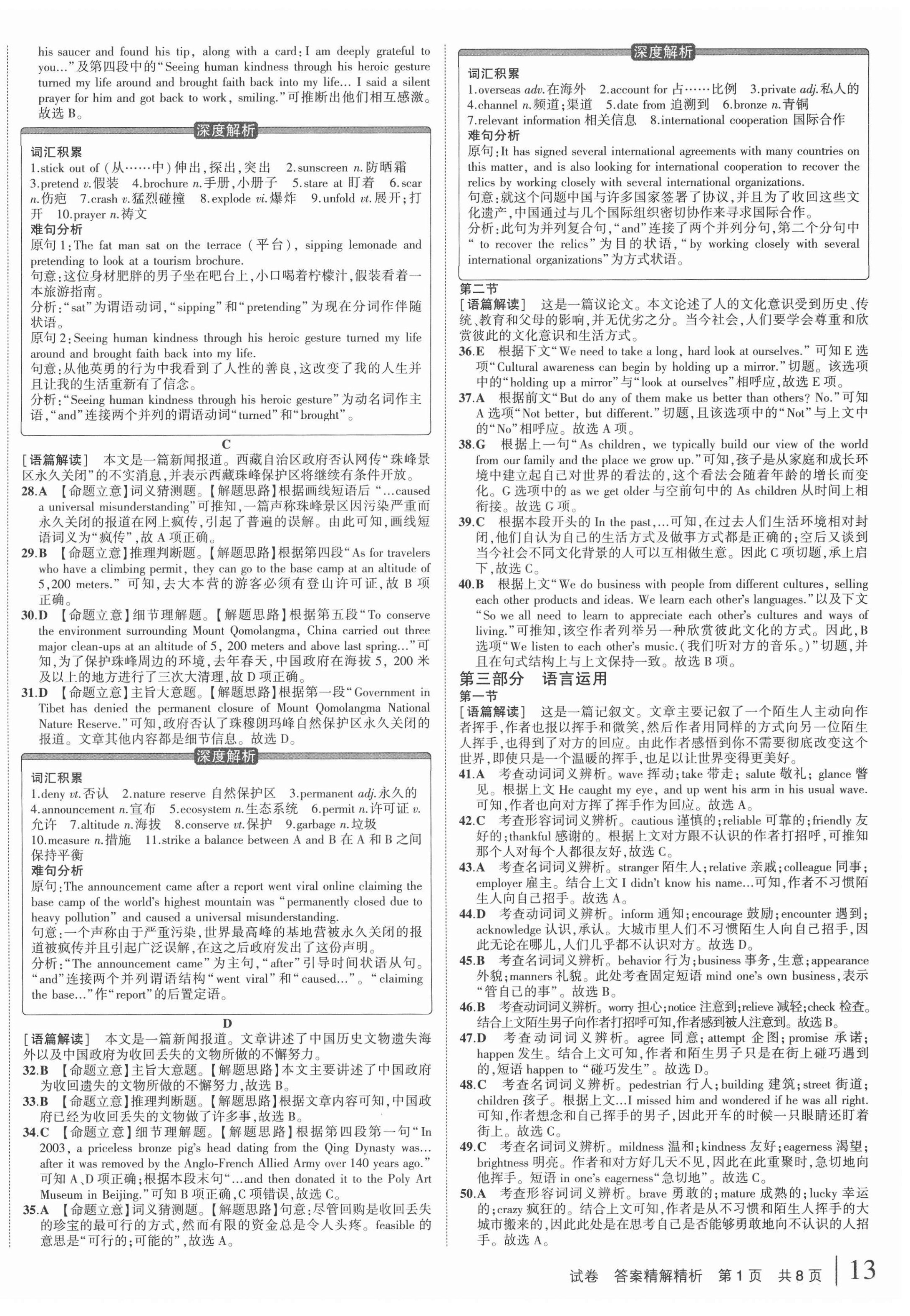 注:目前有些书本章节名称可能整理的还不是很完善,但都是按照顺序排列的,请同学们按照顺序仔细查找。练习册 2021年3年高考2年模拟高中英语必修第二册人教版 答案主要是用来给同学们做完题方便对答案用的,请勿直接抄袭。