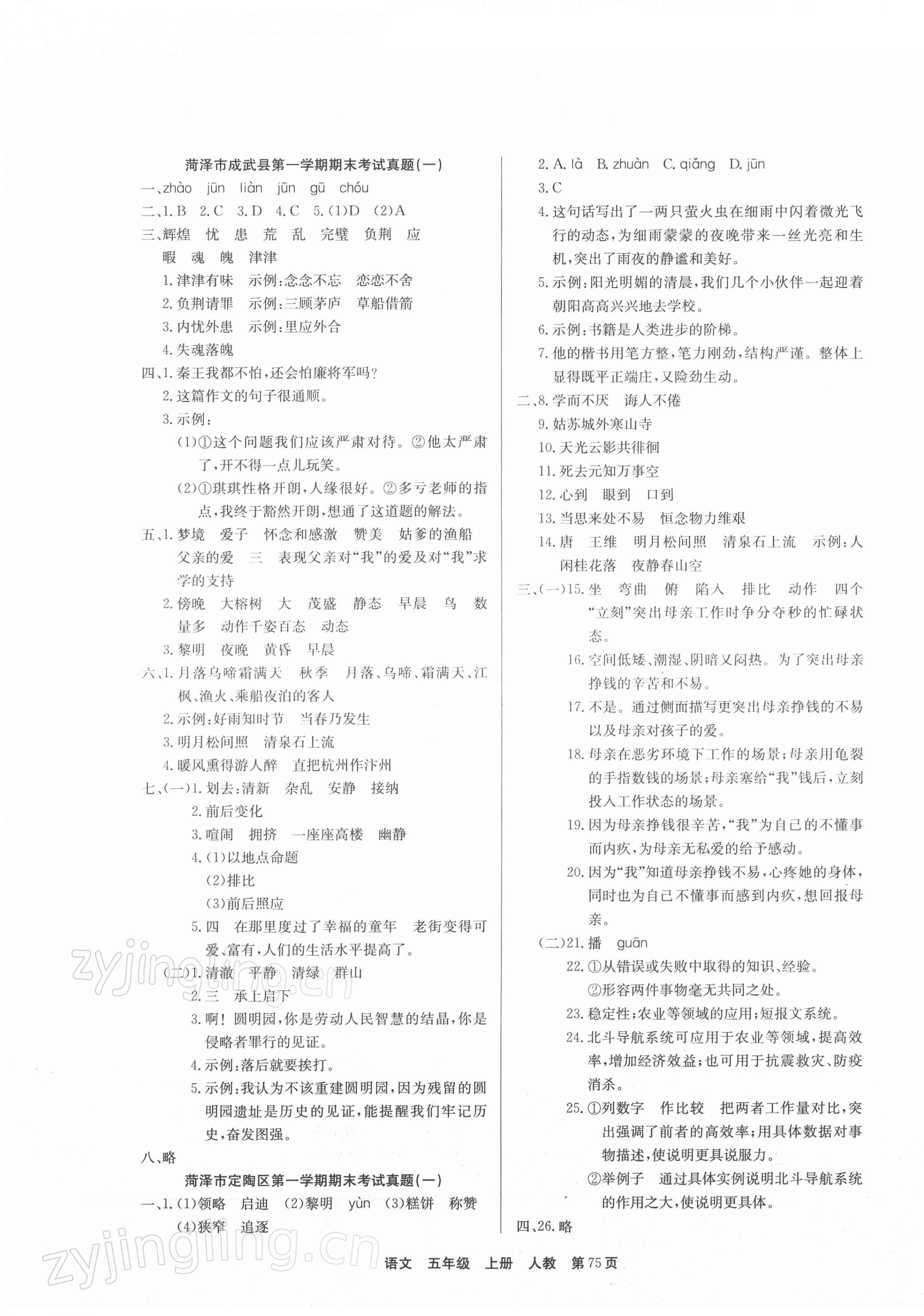 注:目前有些书本章节名称可能整理的还不是很完善,但都是按照顺序排列的,请同学们按照顺序仔细查找。练习册 2021年全优考评一卷通菏泽真题汇编五年级语文上册人教版 答案主要是用来给同学们做完题方便对答案用的,请勿直接抄袭。