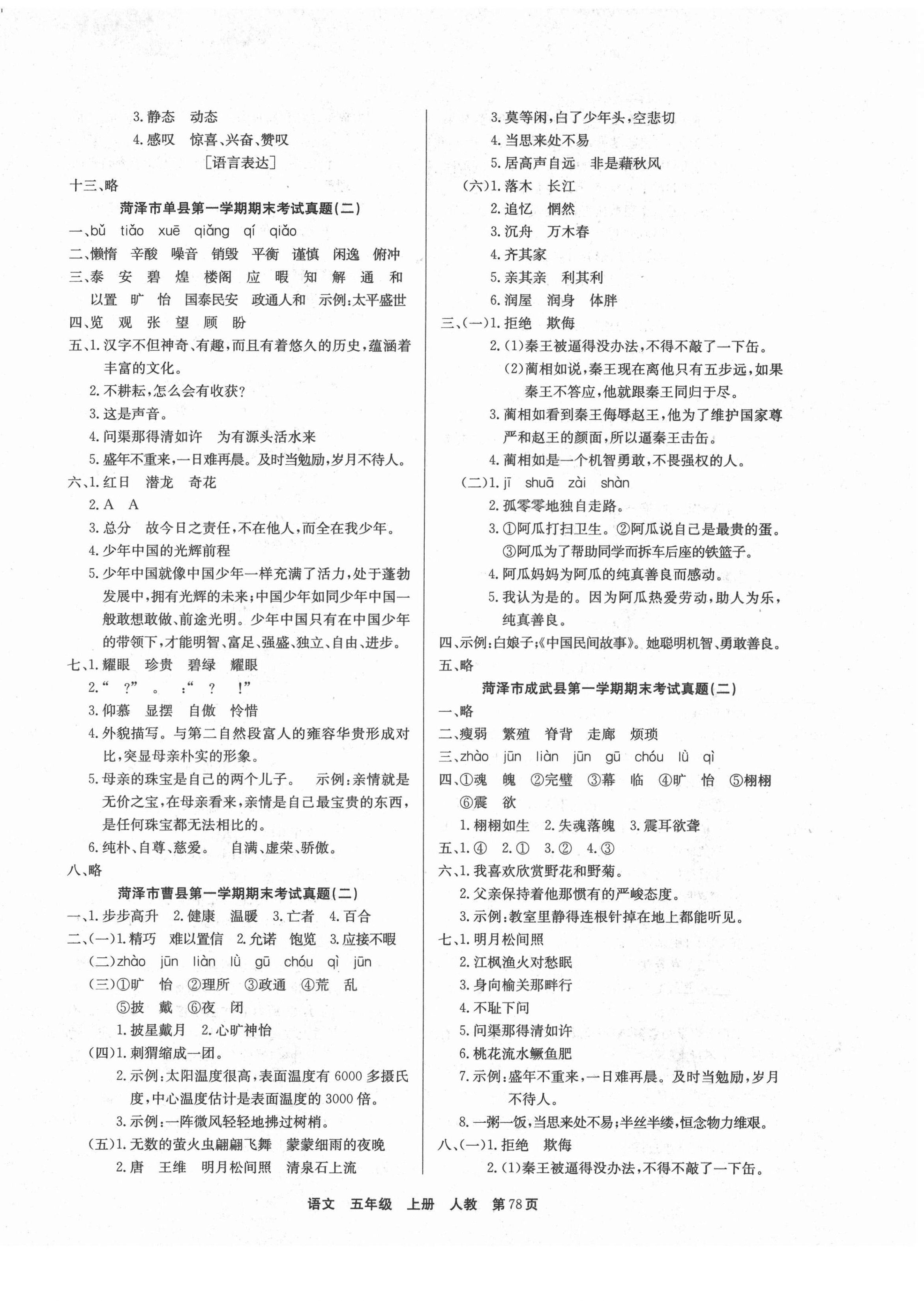 《2021年全优考评一卷通菏泽真题汇编五年级语文上册人教版》