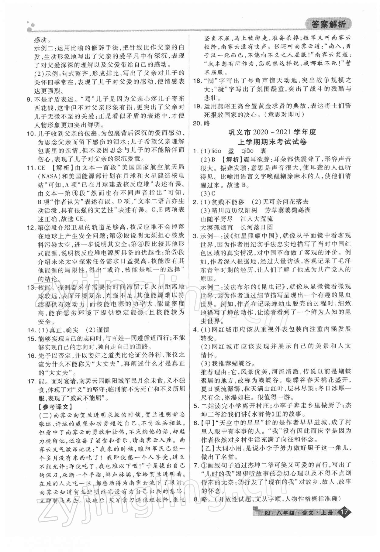 注:目前有些书本章节名称可能整理的还不是很完善,但都是按照顺序排列的,请同学们按照顺序仔细查找。练习册 2021年期末考试必刷卷八年级语文上册人教版郑州专版 答案主要是用来给同学们做完题方便对答案用的,请勿直接抄袭。