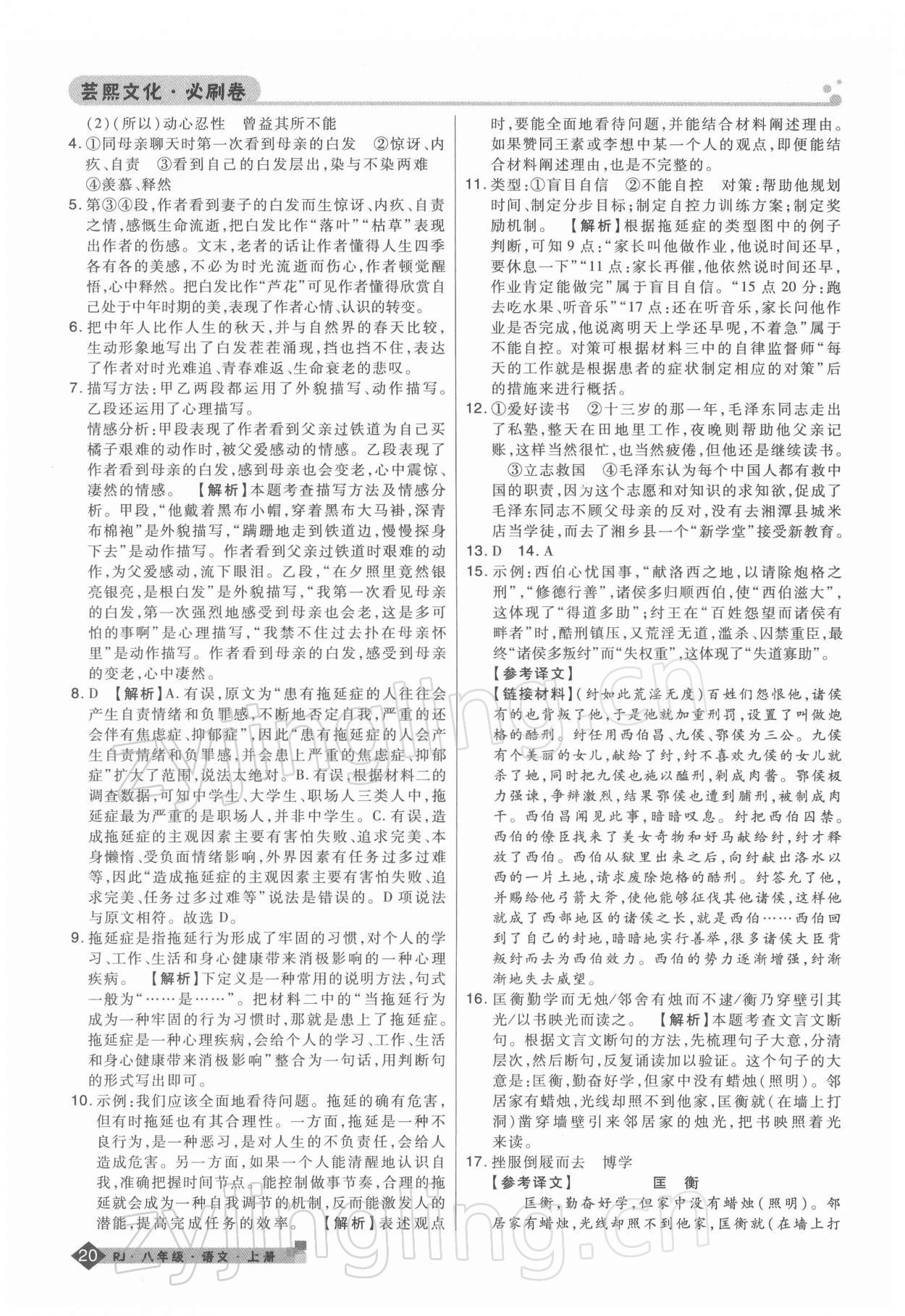 注:目前有些书本章节名称可能整理的还不是很完善,但都是按照顺序排列的,请同学们按照顺序仔细查找。练习册 2021年期末考试必刷卷八年级语文上册人教版郑州专版 答案主要是用来给同学们做完题方便对答案用的,请勿直接抄袭。