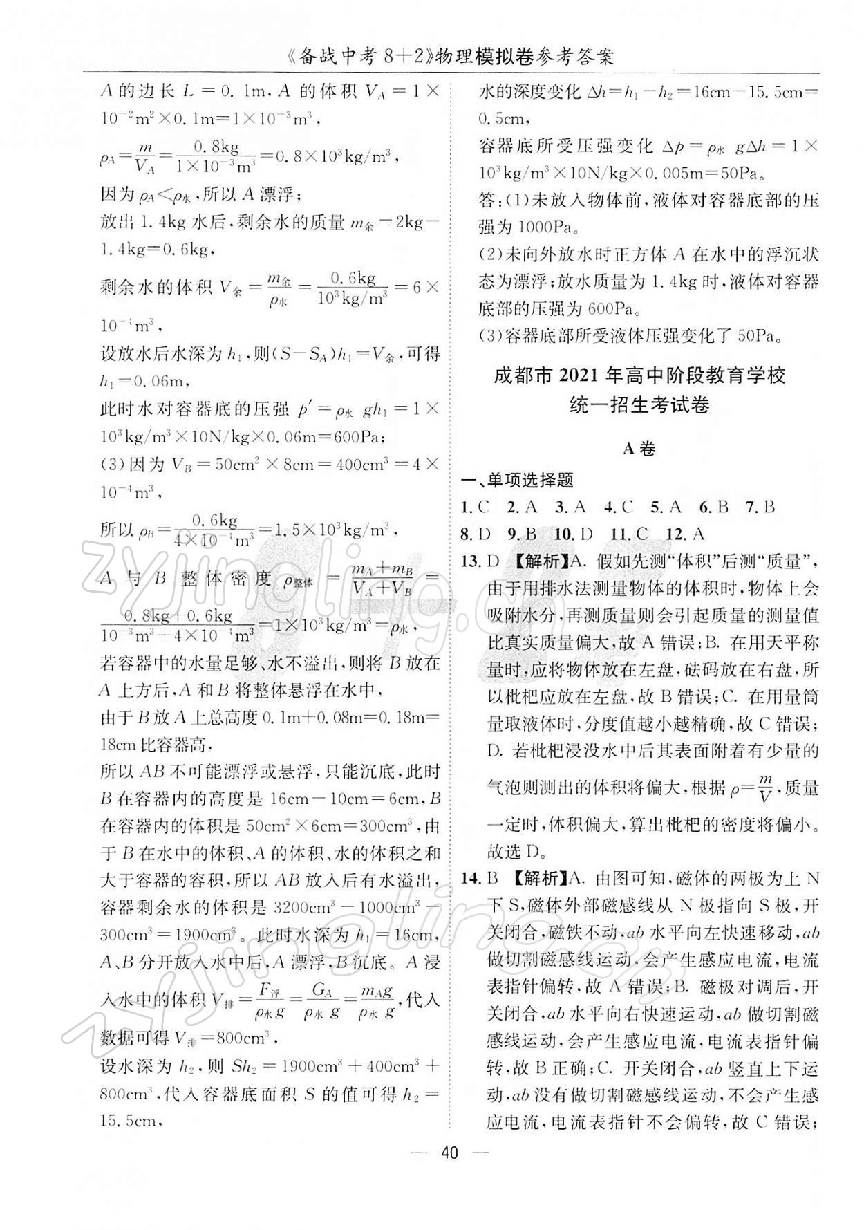 注:目前有些书本章节名称可能整理的还不是很完善,但都是按照顺序排列的,请同学们按照顺序仔细查找。练习册 2022年备战中考8加2物理 答案主要是用来给同学们做完题方便对答案用的,请勿直接抄袭。