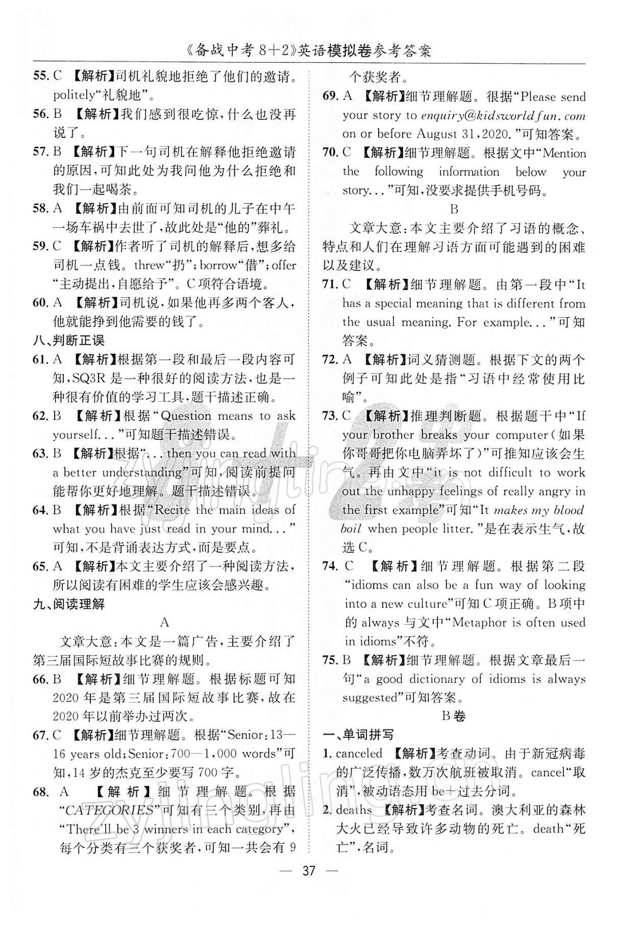 注:目前有些书本章节名称可能整理的还不是很完善,但都是按照顺序排列的,请同学们按照顺序仔细查找。练习册 2022年备战中考8加2英语 答案主要是用来给同学们做完题方便对答案用的,请勿直接抄袭。