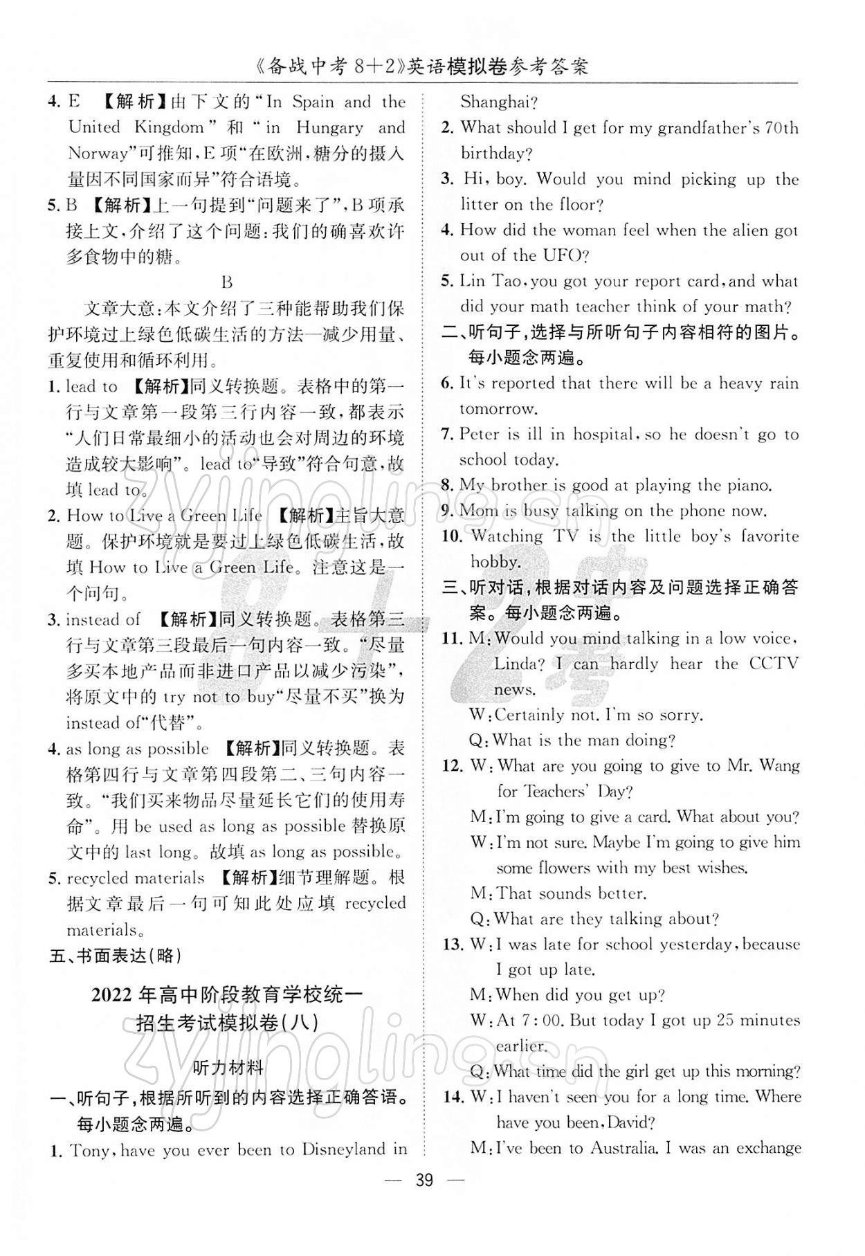 注:目前有些书本章节名称可能整理的还不是很完善,但都是按照顺序排列的,请同学们按照顺序仔细查找。练习册 2022年备战中考8加2英语 答案主要是用来给同学们做完题方便对答案用的,请勿直接抄袭。
