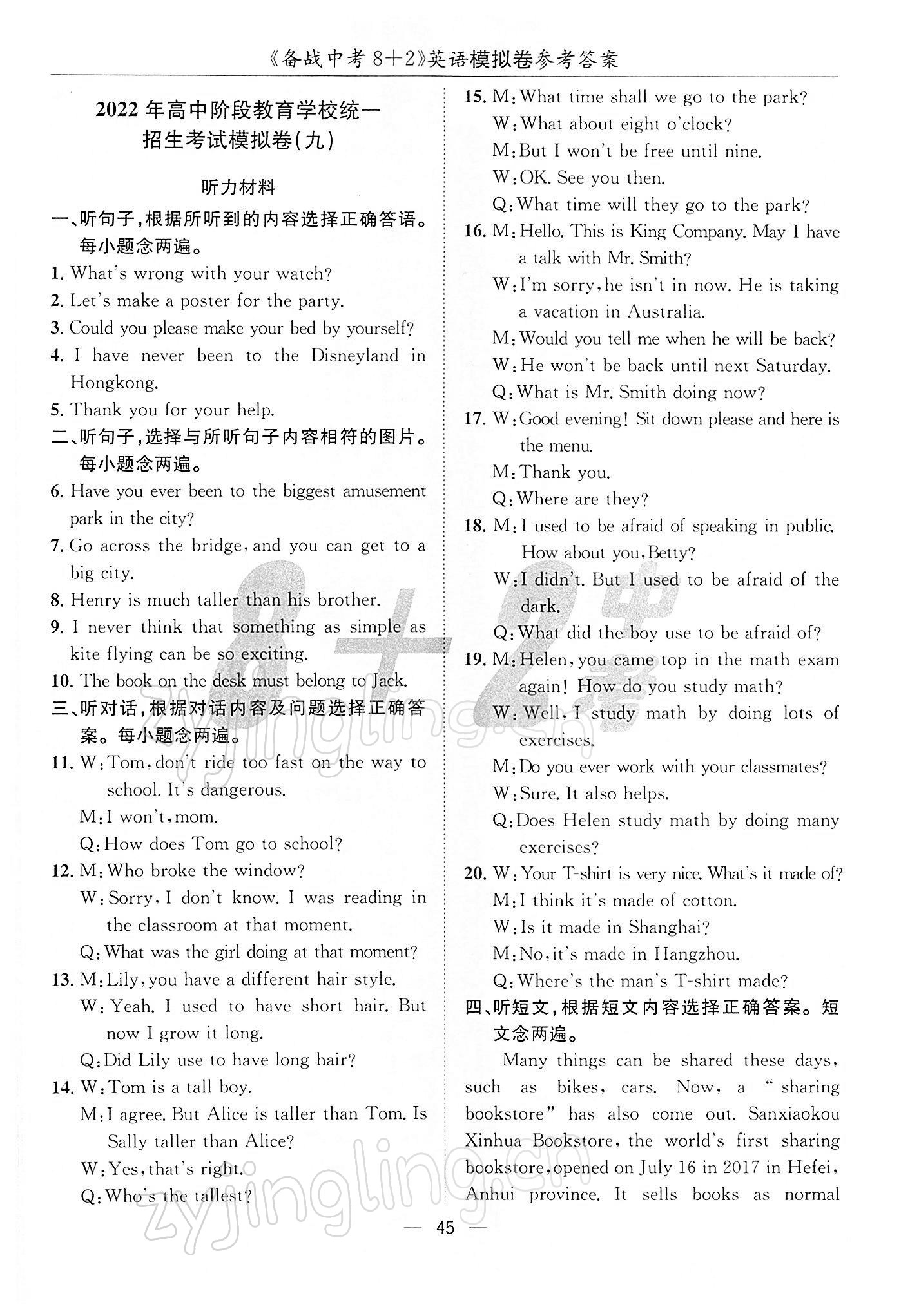 2022年备战中考8加2英语
