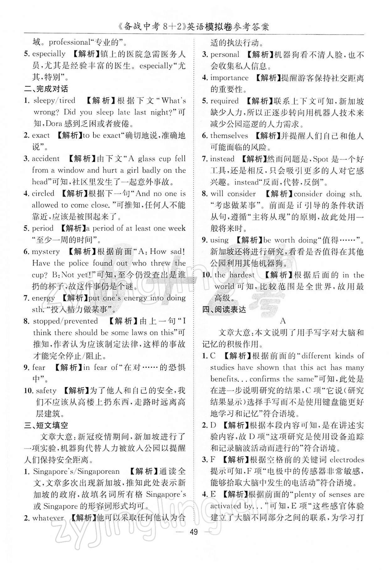 注:目前有些书本章节名称可能整理的还不是很完善,但都是按照顺序排列的,请同学们按照顺序仔细查找。练习册 2022年备战中考8加2英语 答案主要是用来给同学们做完题方便对答案用的,请勿直接抄袭。
