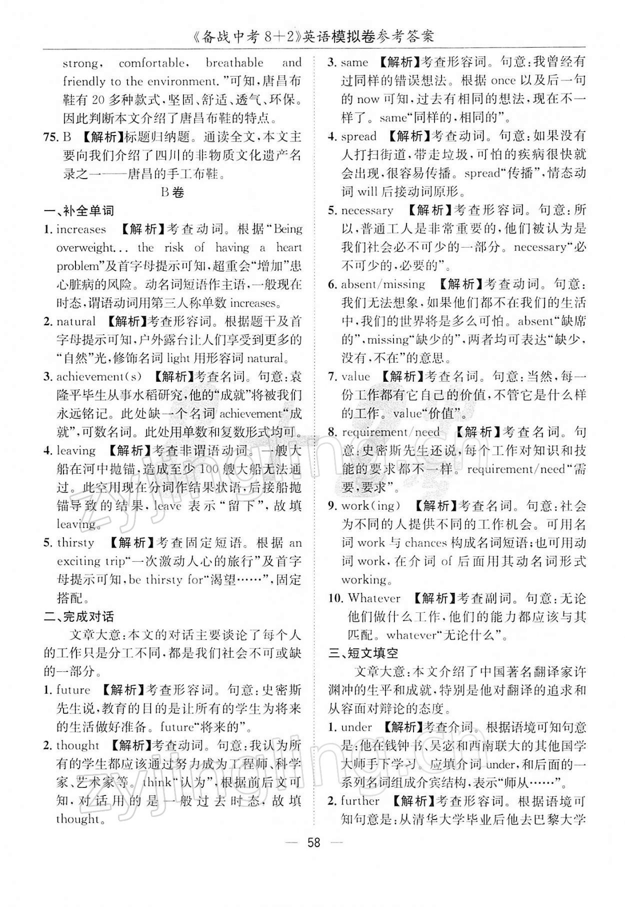 注:目前有些书本章节名称可能整理的还不是很完善,但都是按照顺序排列的,请同学们按照顺序仔细查找。练习册 2022年备战中考8加2英语 答案主要是用来给同学们做完题方便对答案用的,请勿直接抄袭。