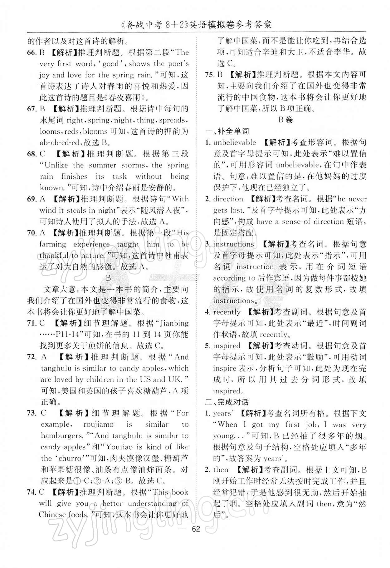 注:目前有些书本章节名称可能整理的还不是很完善,但都是按照顺序排列的,请同学们按照顺序仔细查找。练习册 2022年备战中考8加2英语 答案主要是用来给同学们做完题方便对答案用的,请勿直接抄袭。