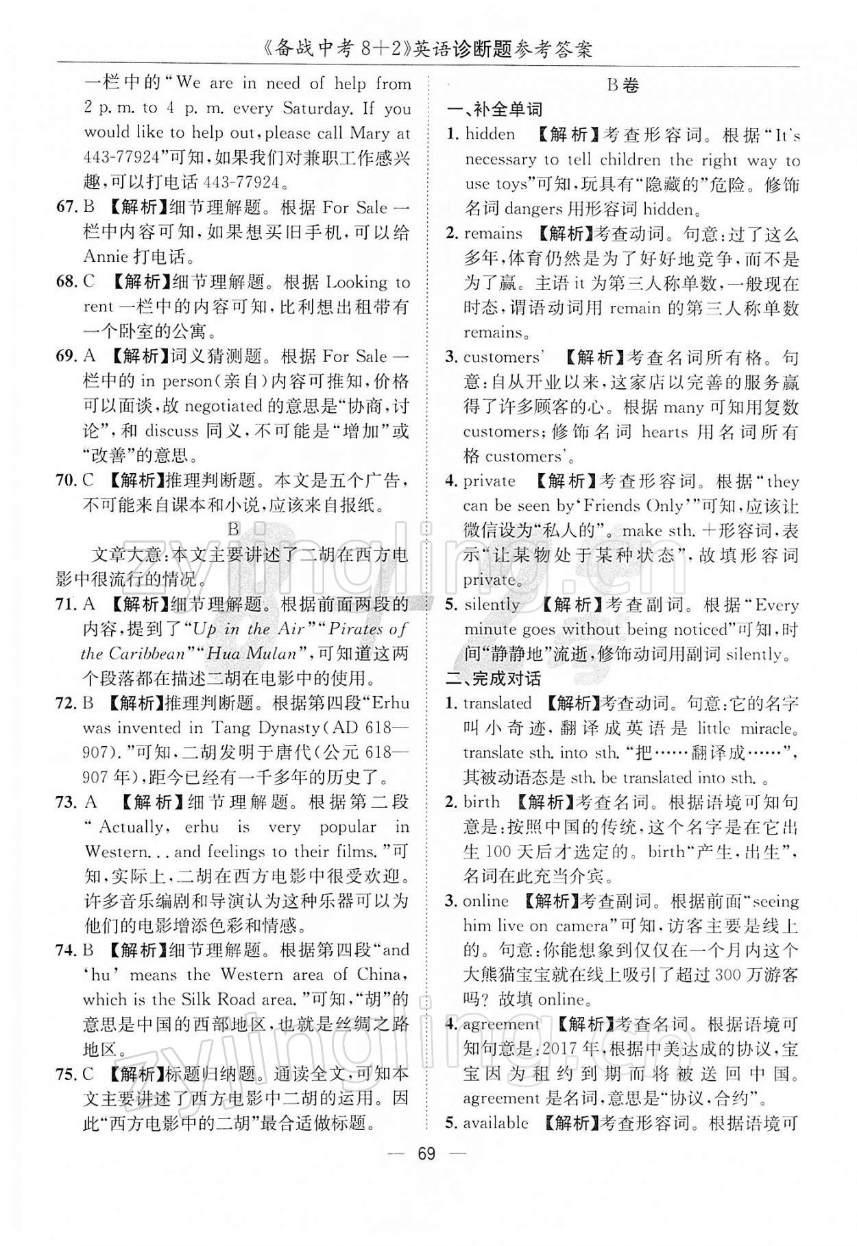 注:目前有些书本章节名称可能整理的还不是很完善,但都是按照顺序排列的,请同学们按照顺序仔细查找。练习册 2022年备战中考8加2英语 答案主要是用来给同学们做完题方便对答案用的,请勿直接抄袭。