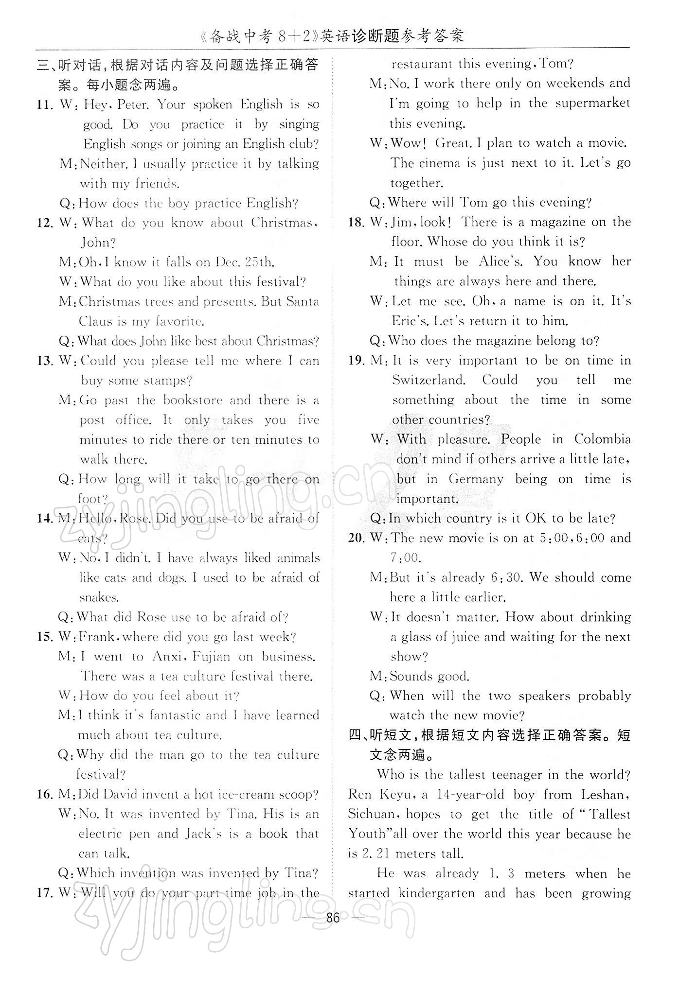 注:目前有些书本章节名称可能整理的还不是很完善,但都是按照顺序排列的,请同学们按照顺序仔细查找。练习册 2022年备战中考8加2英语 答案主要是用来给同学们做完题方便对答案用的,请勿直接抄袭。